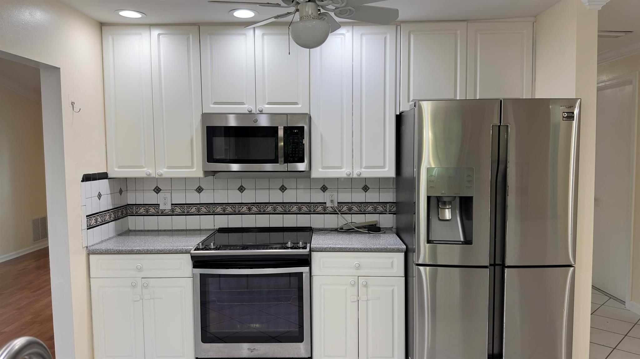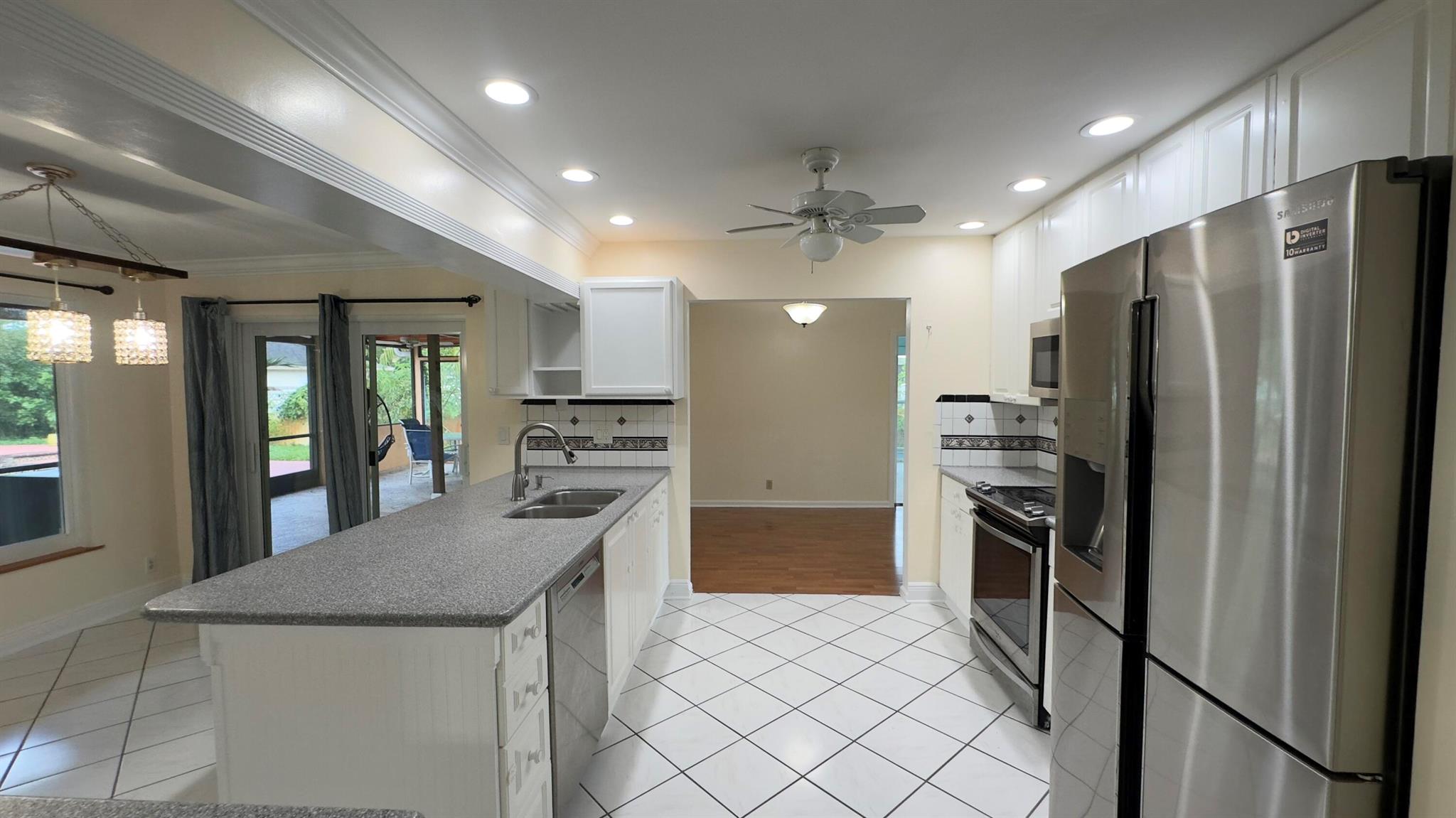 WELLINGTON SINGLE FAMILY POOL HOME WITH 1632 SQ FT OFFERING THREE BEDROOMS TWO BATHS AND A TWO CAR GARAGE (STORAGE ONLY). WOOD AND TILE FLOORING THROUGHOUT LIVING / KITCHEN. WOOD / CARPETING IN BEDROOMS. UPDATED BATHROOMS WITH SHOWER / TUB COMBINATION. OPEN KITCHEN FEATURES STAINLESS APPLIANCES WITH AMPLE WHITE CABINETRY. SLIDERS TO AN OVERSIZED SCREENED PATIO WITH A FULL OUTDOOR KITCHEN LEADING TO YOUR PRIVATE POOL AND LARGE BACKYARD. POOL AND LAWN CARE INCLUDED. PET FRIENDLY!
