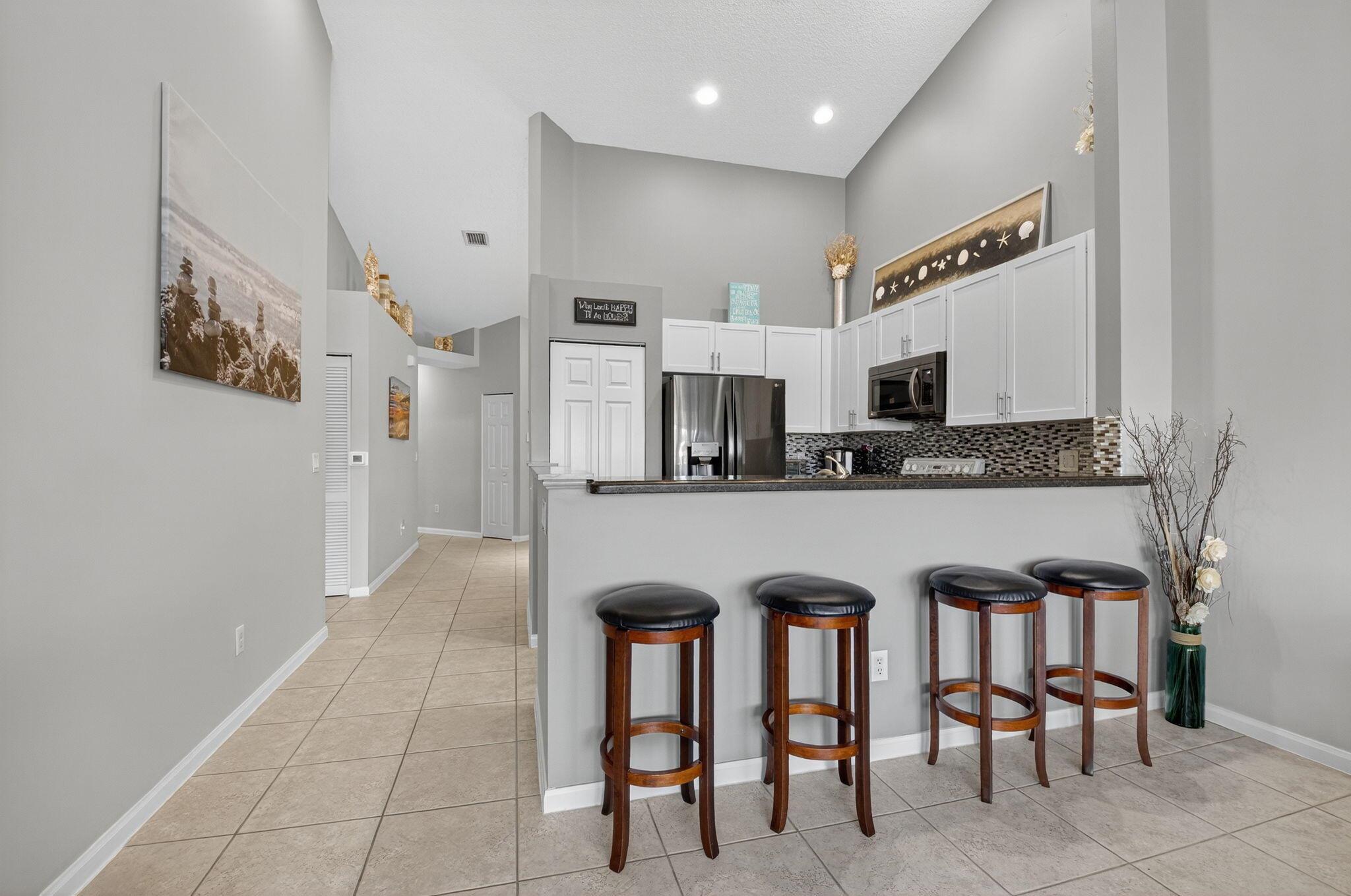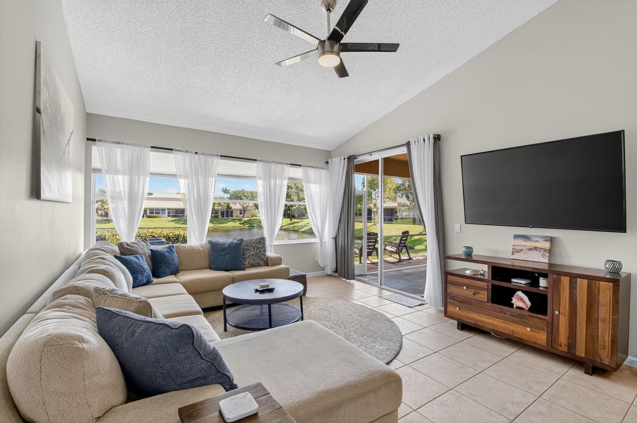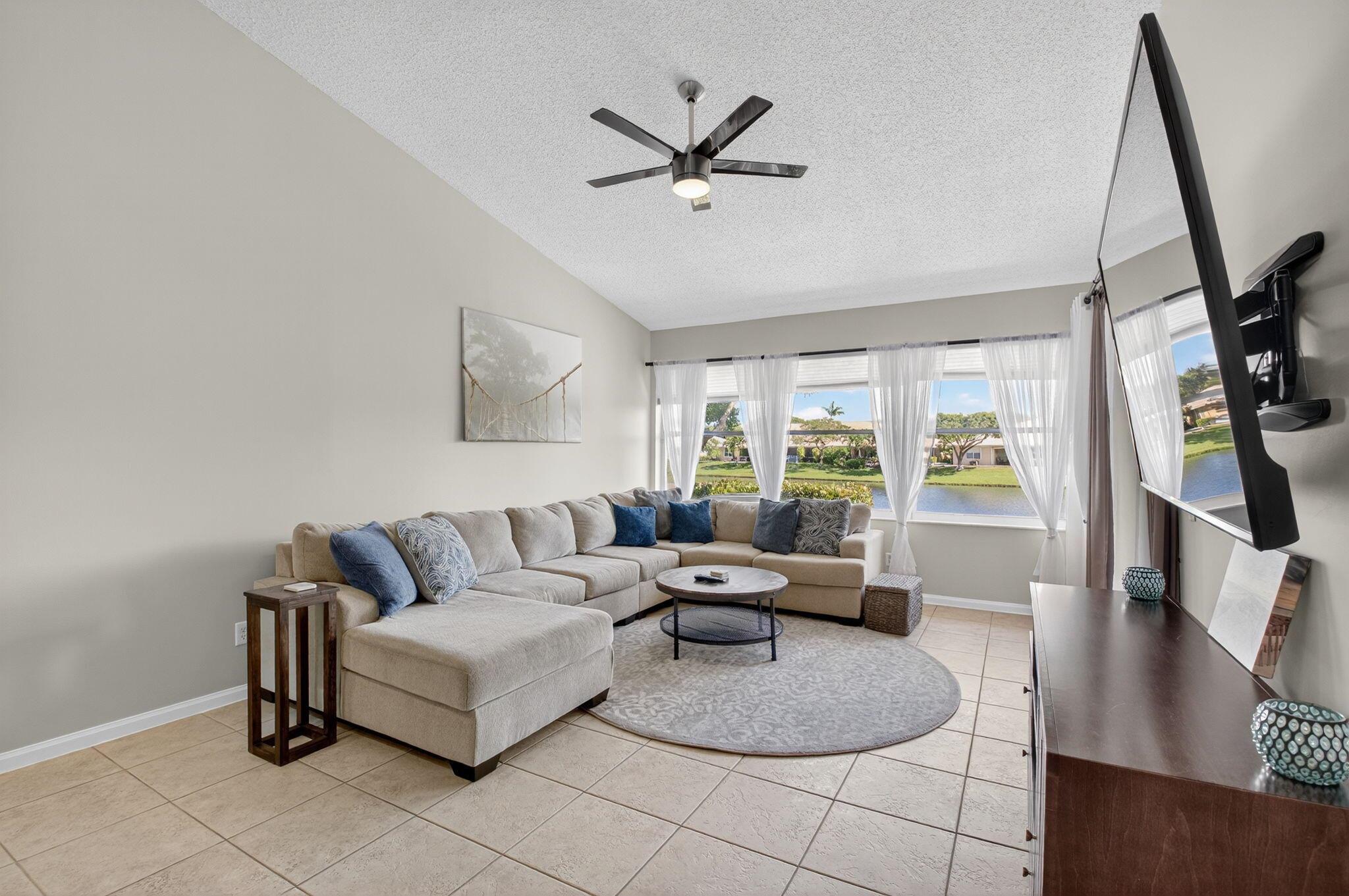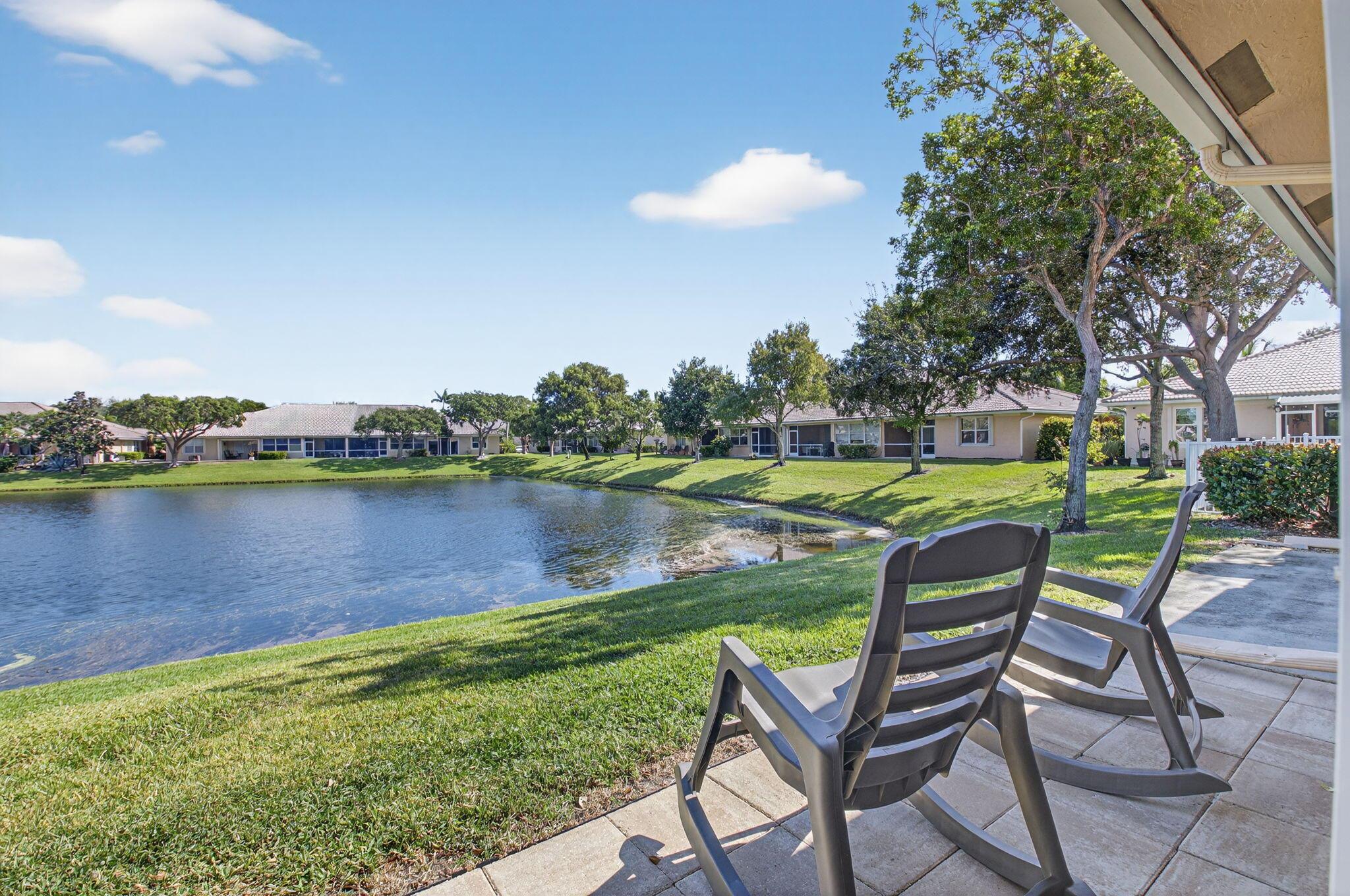 LOCATION! Only 3 miles to Downtown Delray with top-rated restaurants, shopping, nightlife. 3.5 miles to the prestine Beaches. Fully furnished 2/2 villa in a gated community with cable/internet included. Enjoy the beautiful lake views from the living room, primary bedroom, and screened patio. Features stainless steel appliances, granite counters, and a 1-car garage plus 2 driveway spaces. Gated Community offers pool, spa, clubhouse, tennis, playground, billiards room, and library.