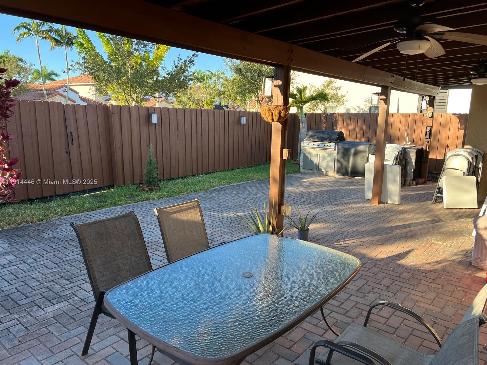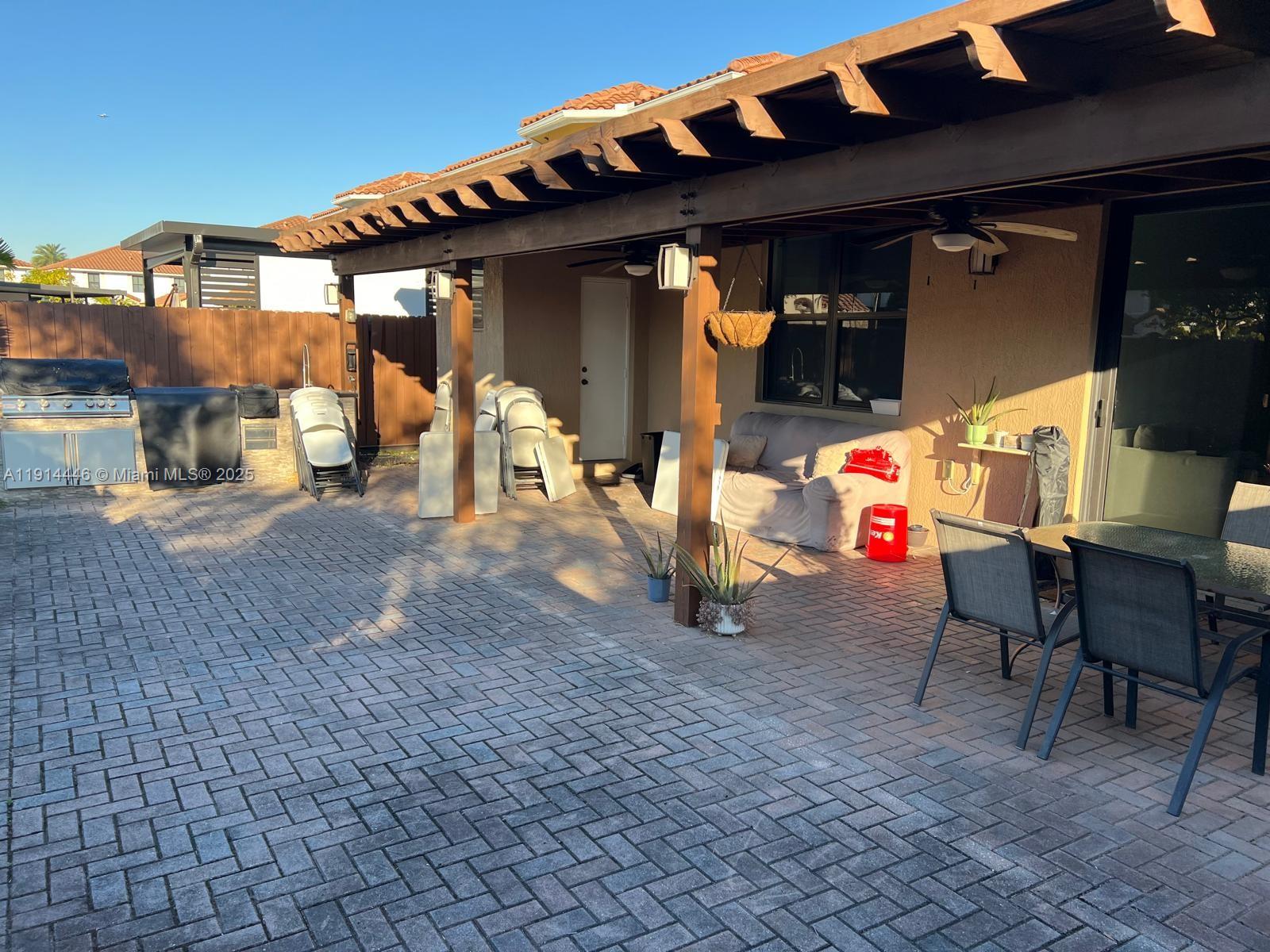 Move-in ready 4-bedroom home located in the highly desirable community of Las Ramblas. This property features 2 full bathrooms and 2 half bathrooms, including an outdoor half bath conveniently positioned next to the built-in summer kitchen and BBQ area with pergola—perfect for entertaining. Enjoy exceptional privacy on a premium lot with no rear neighbors. The home offers tile flooring throughout, a spacious double garage, and well-maintained interiors. The community provides fast HOA approval. Ideally located near A-rated schools, major highways, shopping centers, and Miami International Airport.