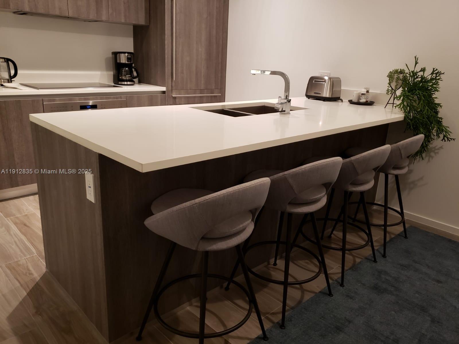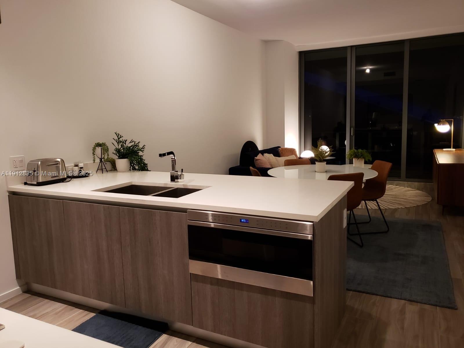 Partly furnished 1 Bedroom + Den with 2 full bathrooms at new SLS Lux. 51st Floor Residence, expansive terrace, Bay and Skyline views, 9-ft high ceilings w/ floor-to-ceiling sliding glass doors, private elevator foyer, chefs kitchen w/ Wolf appliances, electronic window treatments & blackout shades, Nest thermostat, iPad concierge services. 5 star amenities & services: 57th level rooftop sky lounge and 2 story lounge with outdoor living rooms and Jacuzzi, tennis court, basketball court and fitness center. 2 swimming pools(9th & 57th floor), BBQ area. Steps away from shopping, dining & Brickell City Center. 1 parking space thru valet. (Night time pictures shows furniture included with the unit)