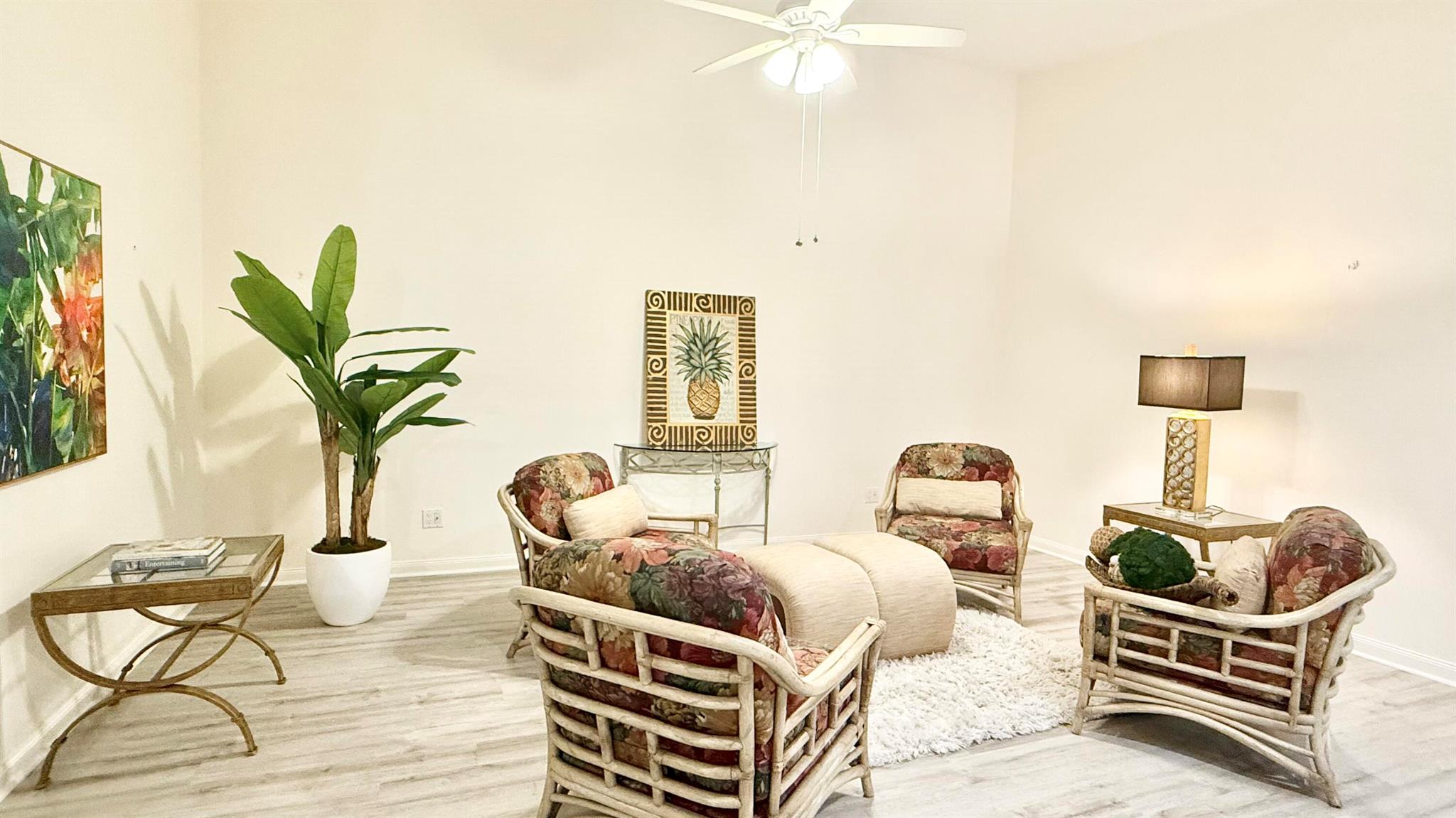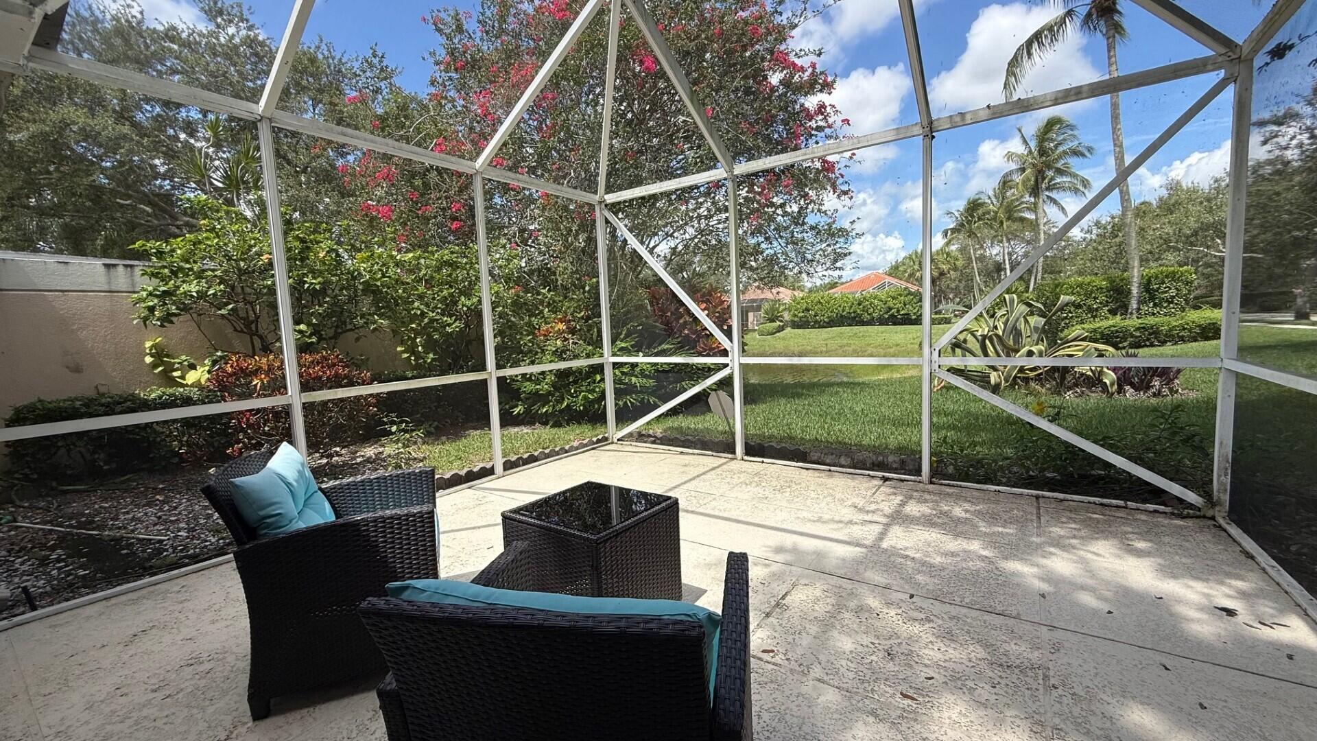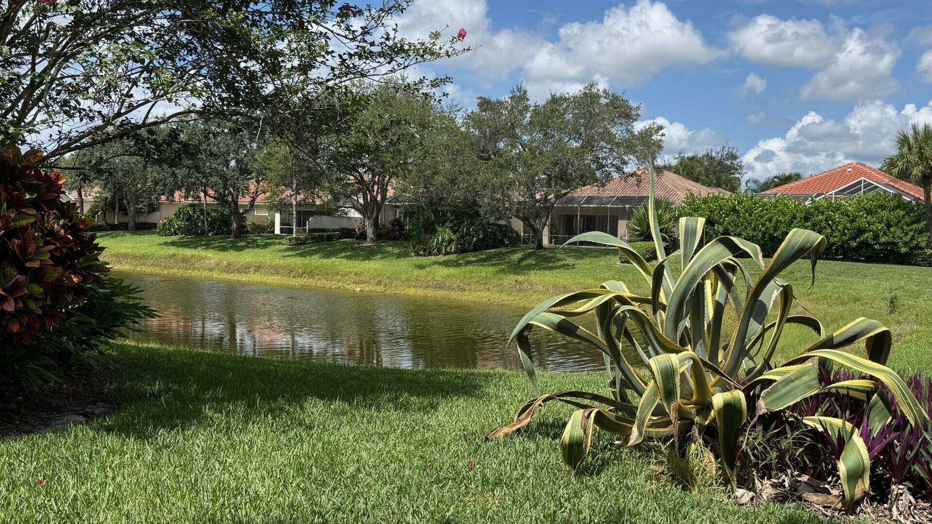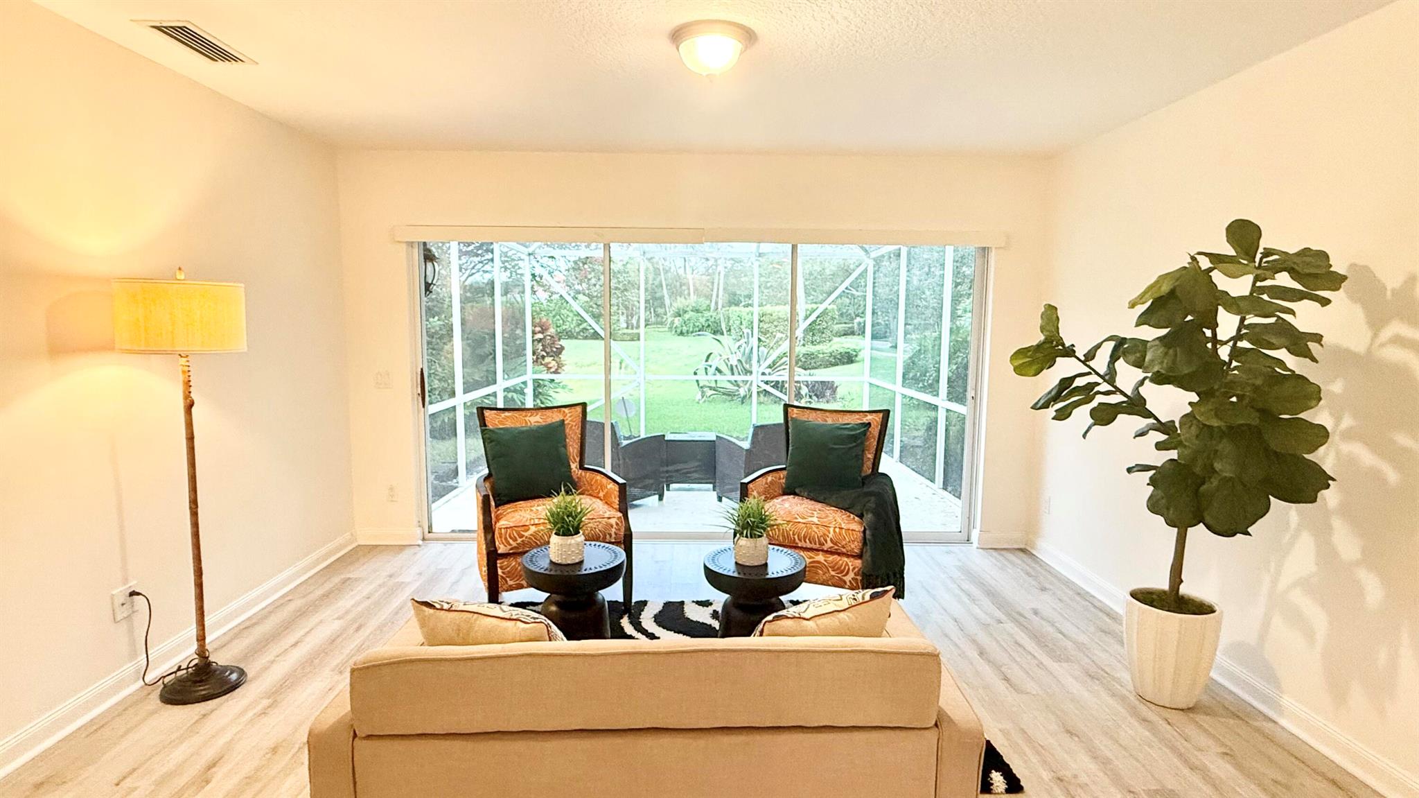 This Extended Capri floor plan has the unique situation of being located on a corner with a tremendous view of open green space! Extremely quiet and close to the park just north of Riverwalk Circle there is a peaceful view from every window! This home features the sought after 'expanded' air conditioned space off of the dining area. The kitchen opens to the Great Room with cathedral ceilings and dining area, perfect for entertaining. Luxury vinyl plank flooring is throughout the whole home. There is a screened patio overlooking the lake and lush landscaping, an ideal spot for early morning coffee or winding down with a glass of wine while watching the sun set. The principal bedroom has an en suite bathroom with walk in shower and double sinks, large walk in closet.
