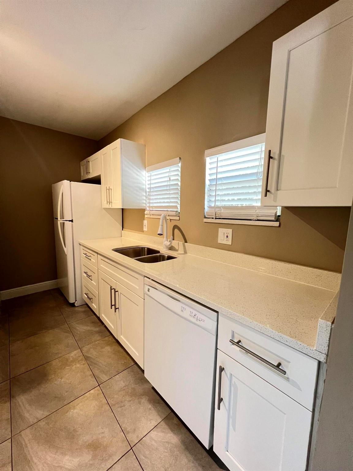 Charming Spanish style two-bedroom one bath multi-level unit, with upstairs living located within two blocks from intercoastal. all tile flooring, white kitchen cabinets, ample storage, stone counter tops, newer shower and bathroom. First floor entrance, second floor living. private, centrally located.