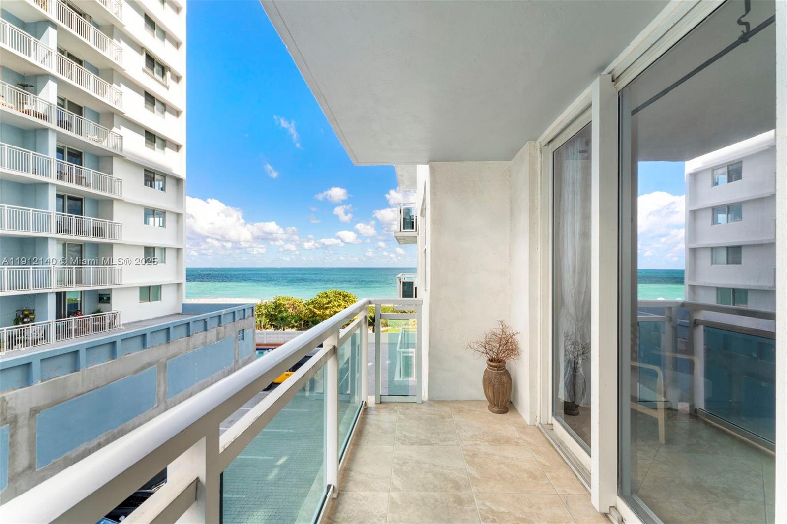 Enjoy delightful ocean breezes and views from this fully furnished unit. This magnificent unit offers full service amenities in a oceanfront building with a private balcony. The open concept design includes a breakfast counter, living/dining area, along with a spacious bedroom with plenty of storage . This unit is perfectly situated minutes to South Beach & the world renown Bal Harbor Shops. This locations allows access to supermarket, restaurants, bakeries, health facilities and local shops.The galley style kitchen has granite counter tops and is fully stocked. Seperate laundry room with full size washer/dryer & extra room for storage. Building offers 5-star amenities:pool, gym, sauna, steam room, business center, social media room, concierge and direct access to Miami Beach board walk.