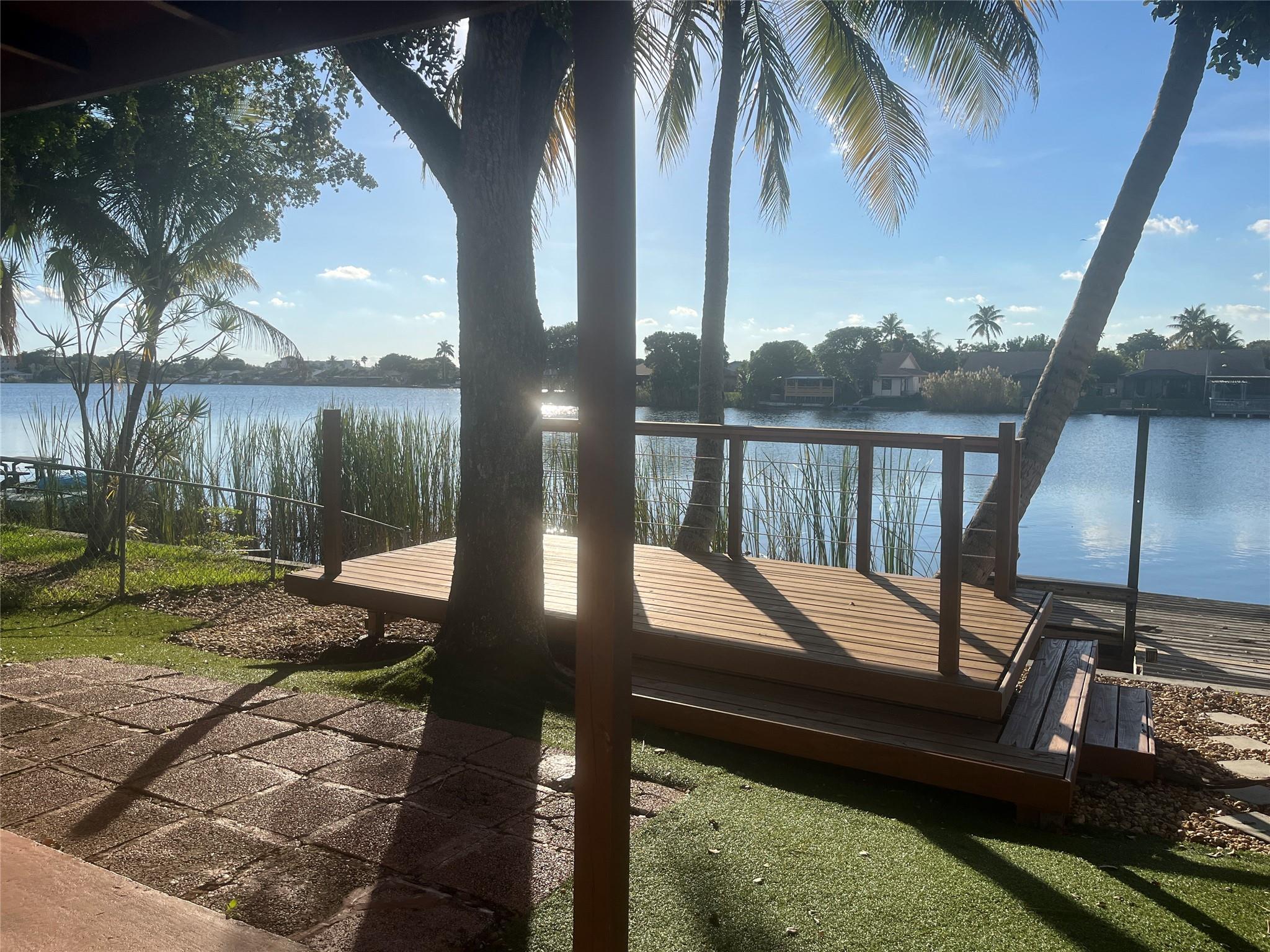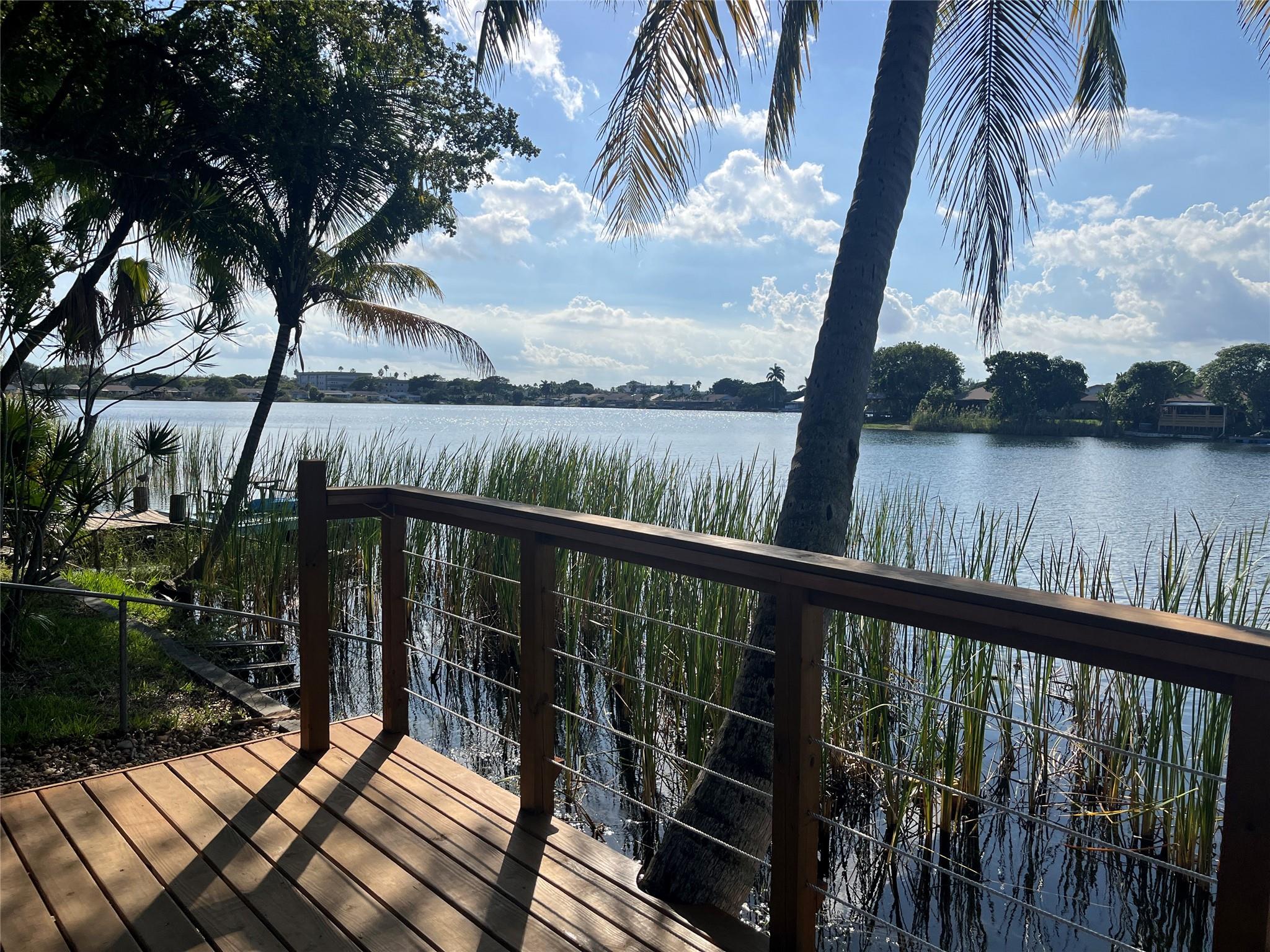 Location, Location. It is the most desired location in Hollywood Hills area. Houses of worship in walking distance. 3 bedrooms and 2 baths villa fronting a 35 acre lake right off your back yard, with unique large outdoor wood deck AND separate large dock right on the water, to enhance your spectacular views. Extremely quiet and peaceful. The private parking easily fit 4 cars. Newer laminate floors and porcelain tile flooring. Freshly painted interiors. Updated two full bathrooms. Central a/c. Newer kitchen cabinets. Stainless Steel kitchen appliances, Unit includes washer & dryer. Beautifully maintained. Ready to move in. Close to Hard Rock Casino, Dania Point shopping complex and Hollywood Beach. Also Close to Ft Lauderdale Airport, and to Port Everglades, minutes to I-95, Turnpike.