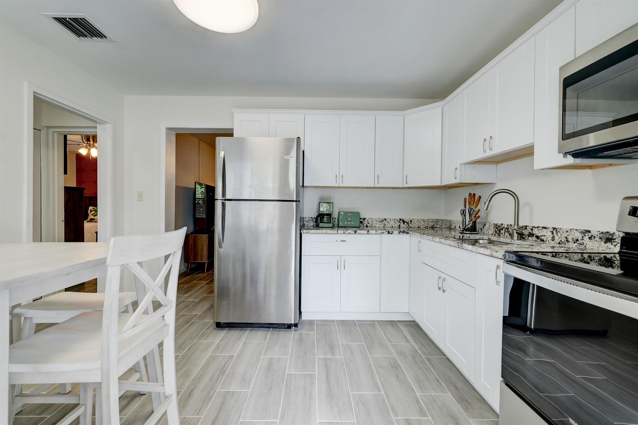FURNISHED & Completely remodeled 2 Bedroom, 1 Bath Villa with all brand new furnitures and furnishings, cookware, towels, pots and pans etc...just bring your toothbrush. With over 800 of comfortable living sqft, roomy enough for a small family. Tiled throughout, comes with its private washer/dryer, private front porch, back patio and parking (with available EV chargers for xtra fee). WIFI, cable, lawn maintenance included. 24 hour lighting and camera system for common areas. Play area, Gas BBQ Grill. Small pets welcome. Less than 15 minutes drive to the beach, Close to downtown, great restaurants.