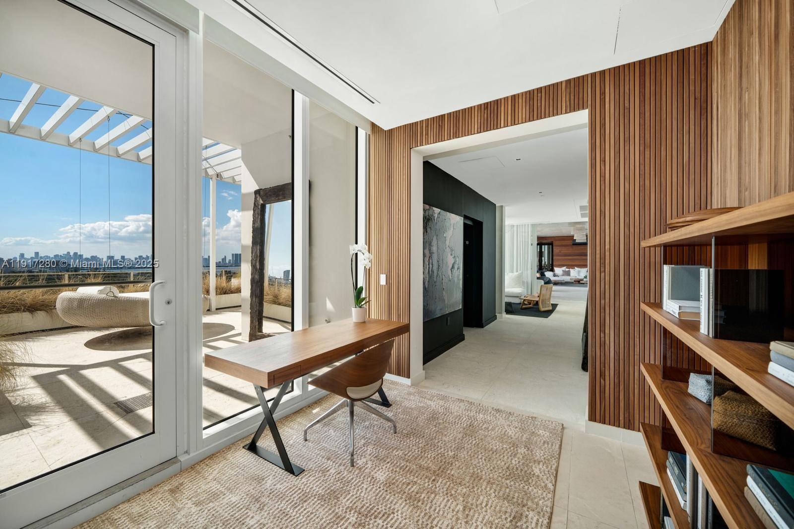 SkyHouse, the crown jewel of The Ritz-Carlton Residences Miami Beach, rises above the water with 300°+ unobstructed views and nearly 9,000 SFt of refined indoor/outdoor living. A newly enclosed modular great room transforms the former open terrace into an all-season sanctuary, with glass walls that glide open to welcome the ocean breeze or close for a serene private retreat. Floor-to-ceiling windows and wraparound terraces frame Miami’s most dramatic sunrise, sunset, ocean, bay, and skyline vistas. Designed by award-winning CEU Studio, the residence reflects a Bali-inspired tropical modern aesthetic. Custom Balinese furnishings, including heirloom pieces carved from reclaimed old-growth wood, bring warmth and soulful character. Natural textures, sculptural forms, and a calm organic palette define its effortless luxury. The primary suite features a Salvatori Signature bathroom overlooking the bay, custom Porro closets, and Fantini fixtures, while the Boffi kitchen w/ Gaggenau appliances delivers Italian precision. SkyHouse is the only residence w/ a dedicated butler, offering unmatched personalized hospitality. Additional private features include a 40 boat slip, an enclosed 2-car garage, and reserved parking exclusive to SkyHouse. Residents also enjoy Ritz-Carlton amenities, including a poolside restaurant, theater, spa, and state-of-the-art fitness center. More than a home, SkyHouse is a private resort in the sky where tropical modern design and world-class service converge.