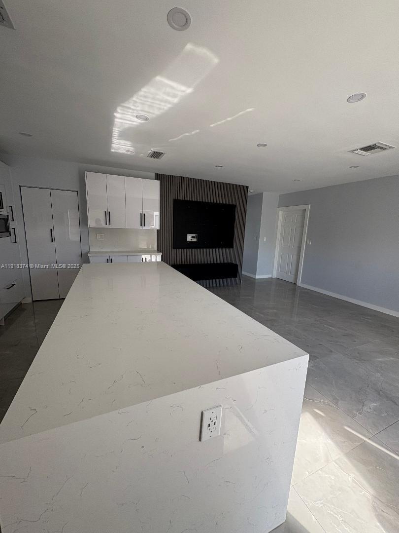 This beautifully updated home features an open-concept layout with a spacious living area and a stunning modern kitchen complete with a large waterfall island, quartz counters, and stainless steel appliances. The home offers 3 bedrooms, 2 fully remodeled bathrooms, and custom closets throughout for optimal storage. Enjoy a bright and airy interior, sleek tile flooring, and a functional floorplan perfect for comfortable living and entertaining. The property also includes a nice private backyard, ideal for relaxing or hosting gatherings, along with ample parking in the front. Located in a prime central area close to major highways, shops, and dining, this home is move-in ready and designed with style and convenience in mind.