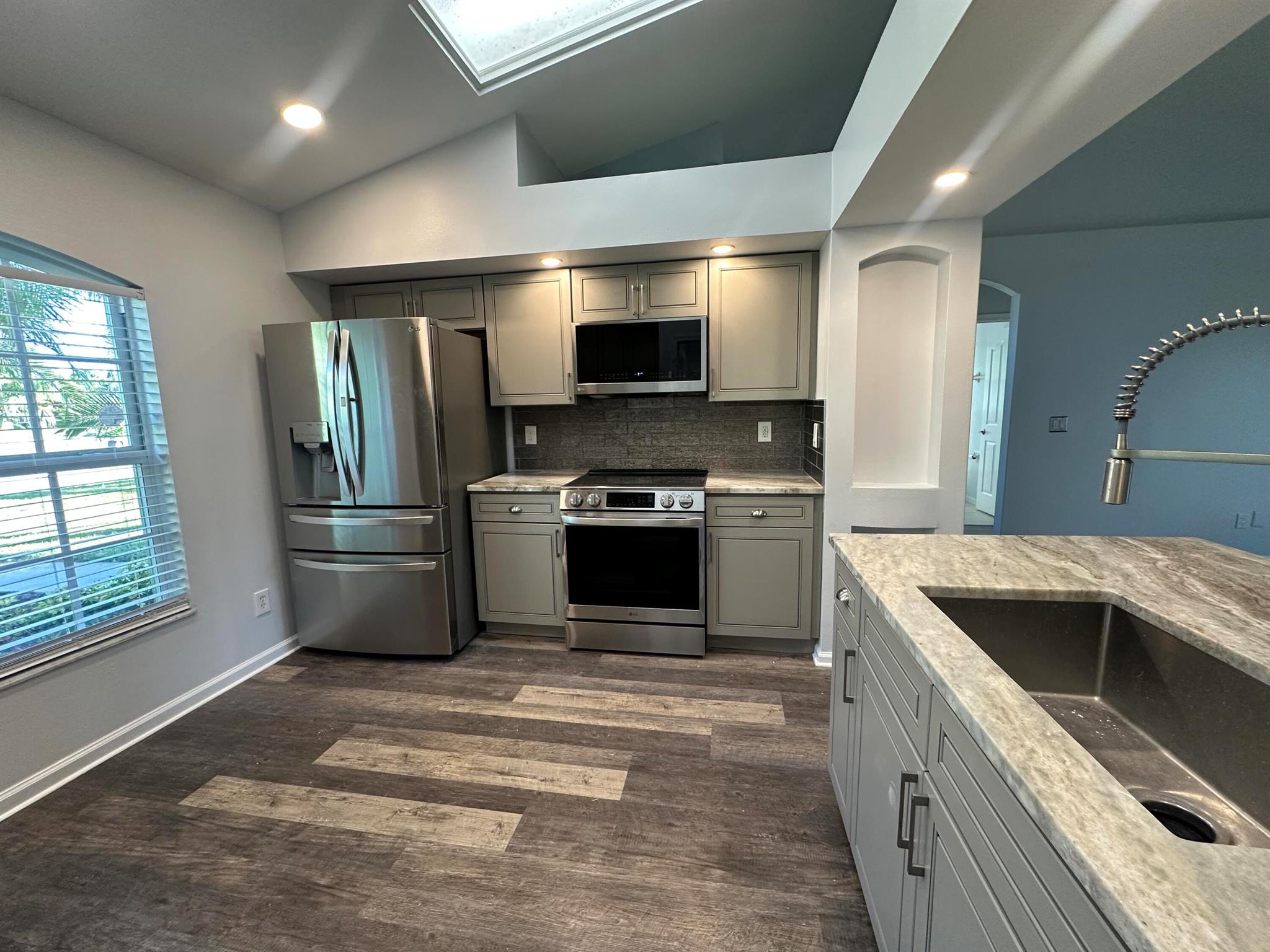 Welcome to your next home! This beautifully maintained 3 bedroom, 2 bathroom residence offers comfort, convenience, and modern living, all in one inviting package! This home features a bright, open-concept living room perfect for relaxing or entertaining.The kitchen is equipped with updated appliances, ample cabinet space, and a breakfast bar/dining nook. Primary bedroom includes a private ensuite bathroom and generous closet space. In-unit washer and dryer for added convenience. The lawn care is included in rent.