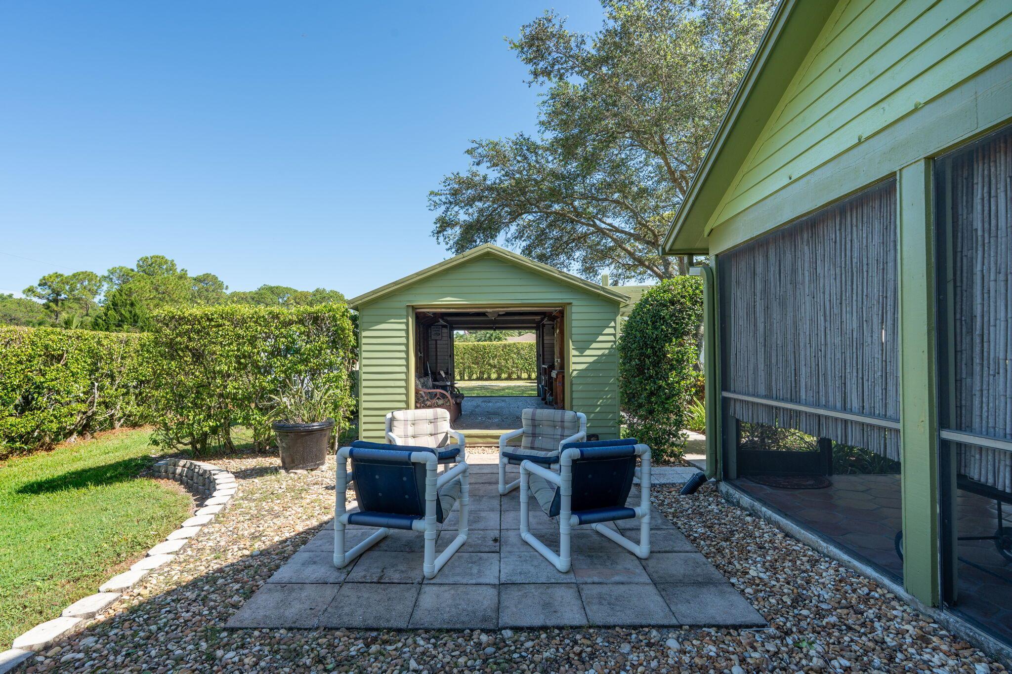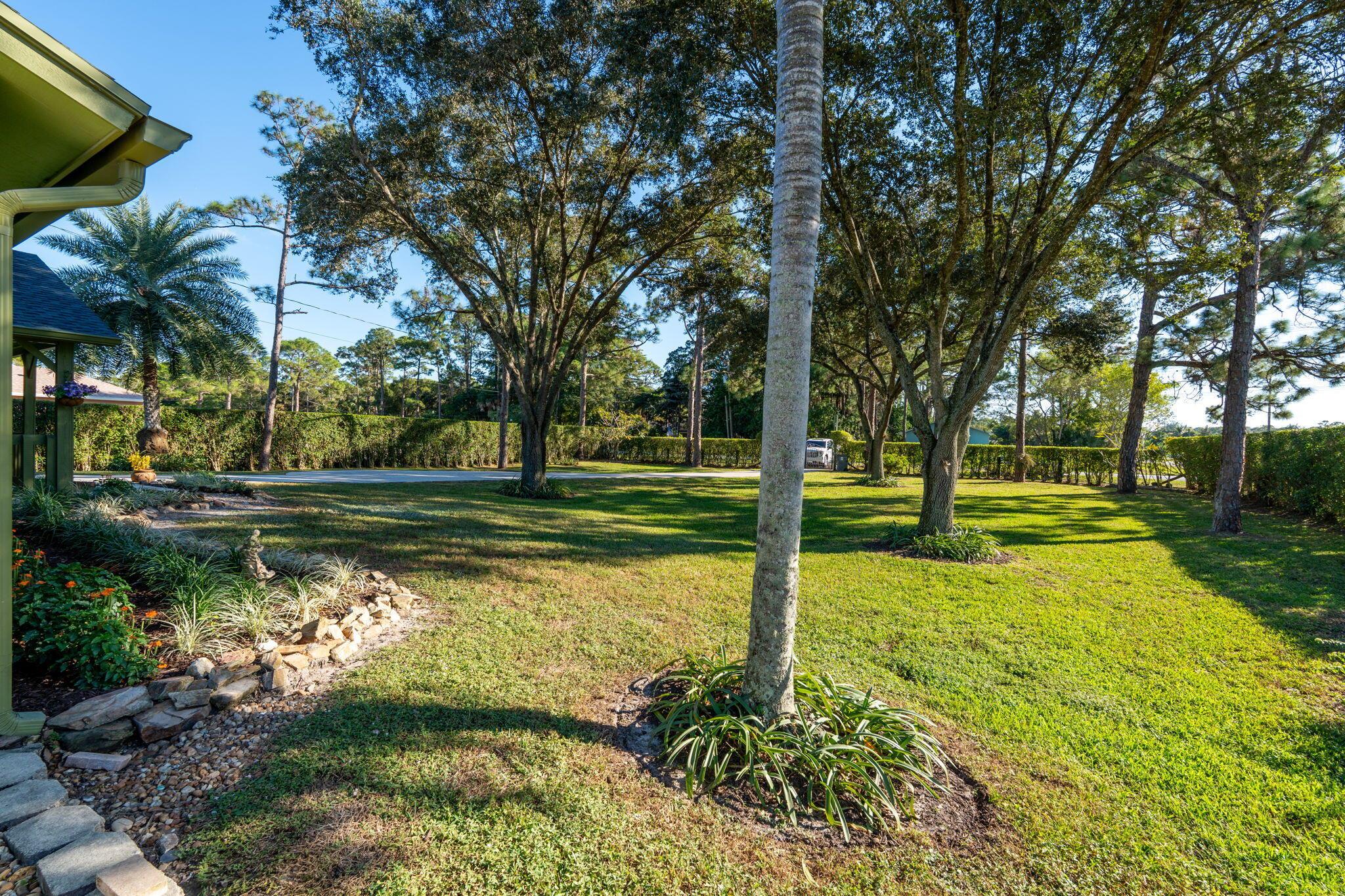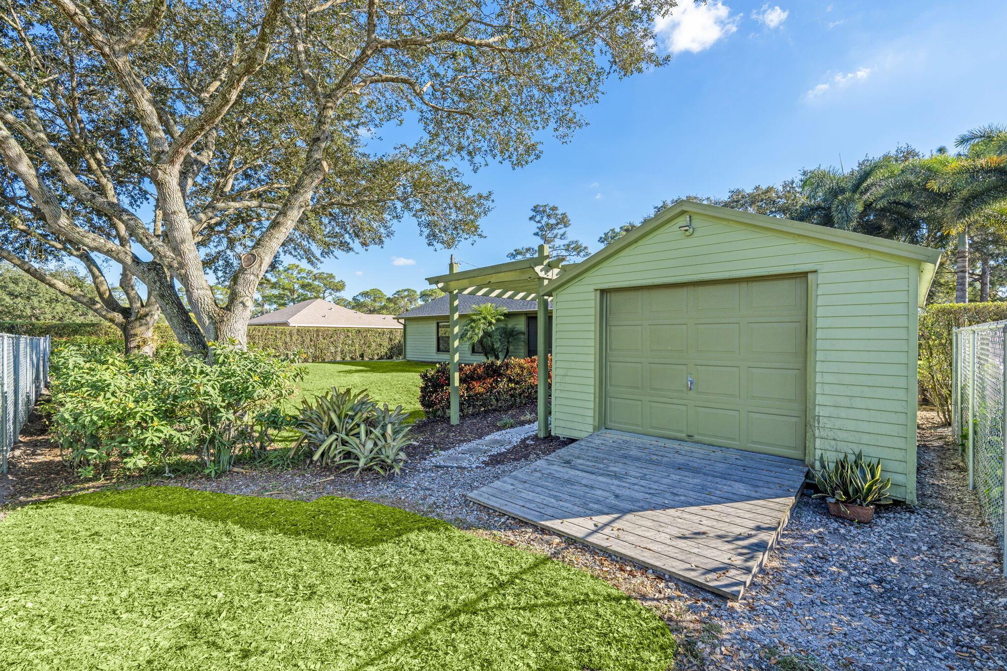 Welcome to your private retreat - perfectly located right off Royal Palm Beach Blvd! Enjoy the convenience of a PAVED ROAD, a fully fenced in property, and plenty of space for all your toys. This home features a huge private covered patio, an oversized personal shed, and a one-car garage for extra storage. Split floor plan with vaulted ceilings. NEW ROOF & IMPACT WINDOWS. All new light fixtures and interior paint. Shaded with mature trees and a complete perimeter hedge. Lawn Maintenance included! Schedule your private tour today.