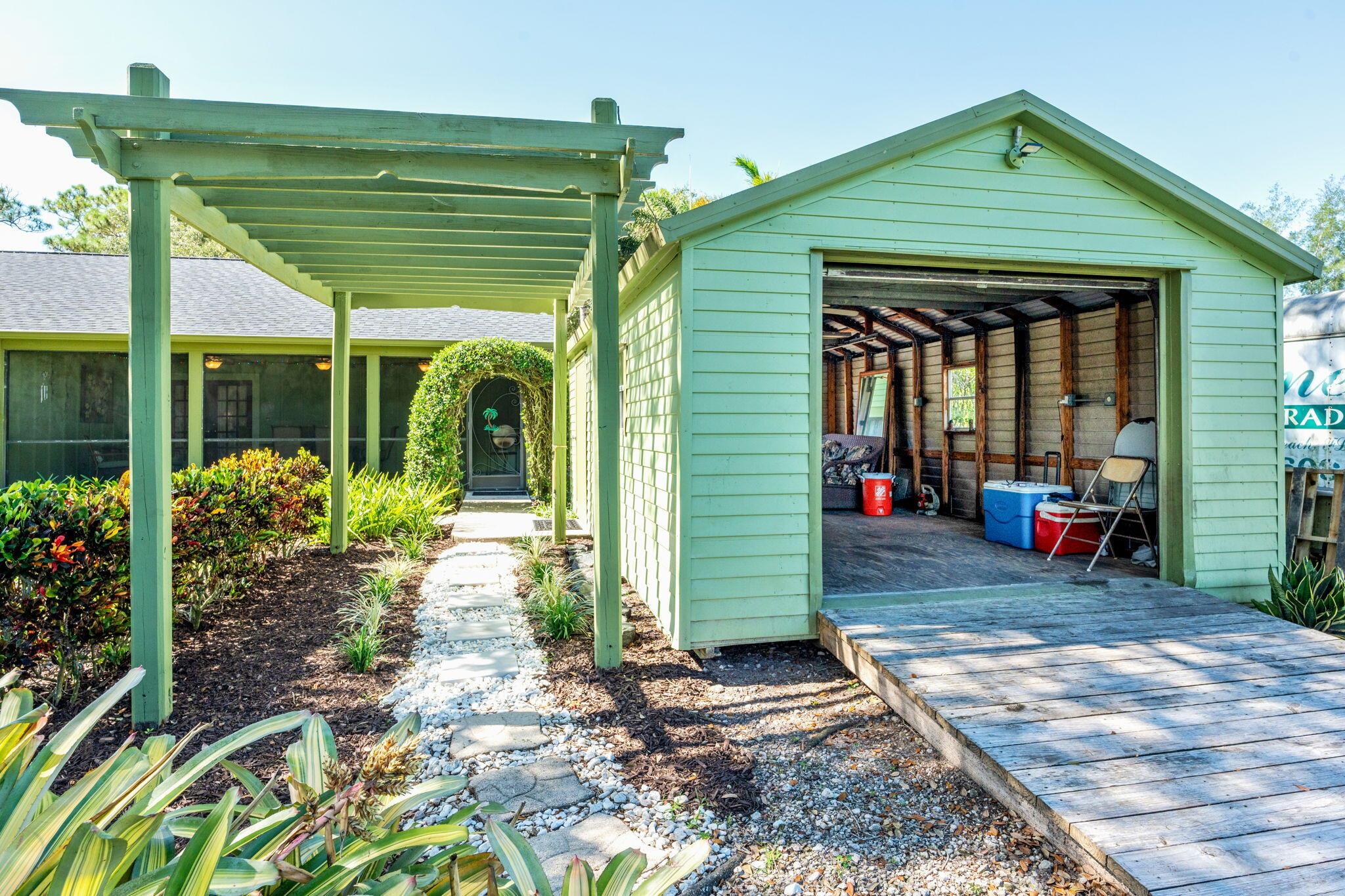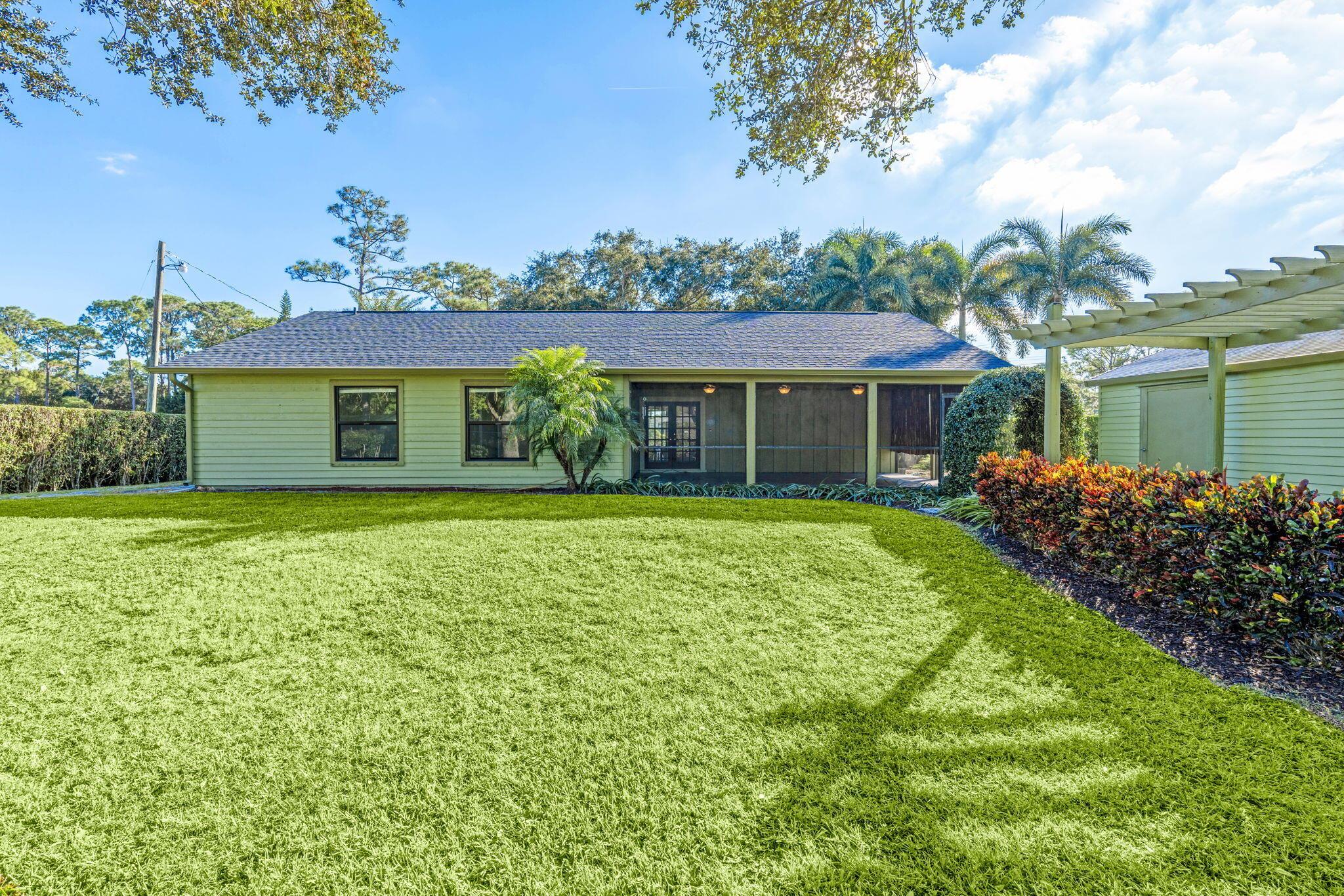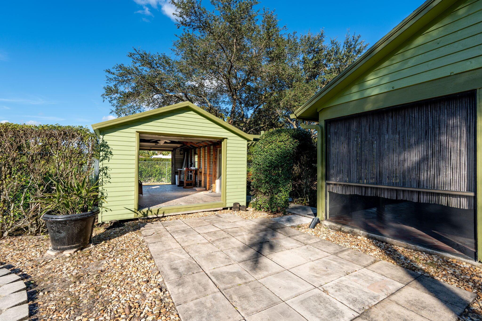 Welcome to your private retreat - perfectly located right off Royal Palm Beach Blvd! Enjoy the convenience of a PAVED ROAD, a fully fenced in property, and plenty of space for all your toys. This home features a huge private covered patio, an oversized personal shed, and a one-car garage for extra storage. Split floor plan with vaulted ceilings. NEW ROOF & IMPACT WINDOWS. All new light fixtures and interior paint. Shaded with mature trees and a complete perimeter hedge. Lawn Maintenance included! Schedule your private tour today.