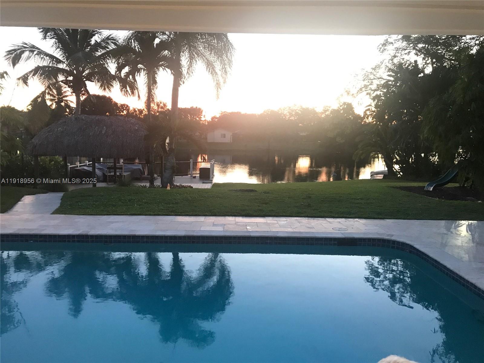 This home is truly one-of-a-kind, offering a breathtaking panoramic lake view the moment you walk in. Featuring 4 bedrooms and 2 bathrooms, the property was completely remodeled a few years ago with high-end finishes, including modern kitchen cabinetry, stainless steel appliances, tile flooring throughout, and impact windows and doors. Perfect for those who enjoy outdoor living and entertaining, the home boasts a charming Tiki Hut on a wooden deck by the lake—an ideal setting for hosting family and friends or simply relaxing—while the children enjoy the pool. Do not miss the opportunity to live in one of the most peaceful and prestigious areas of Miami Lakes.