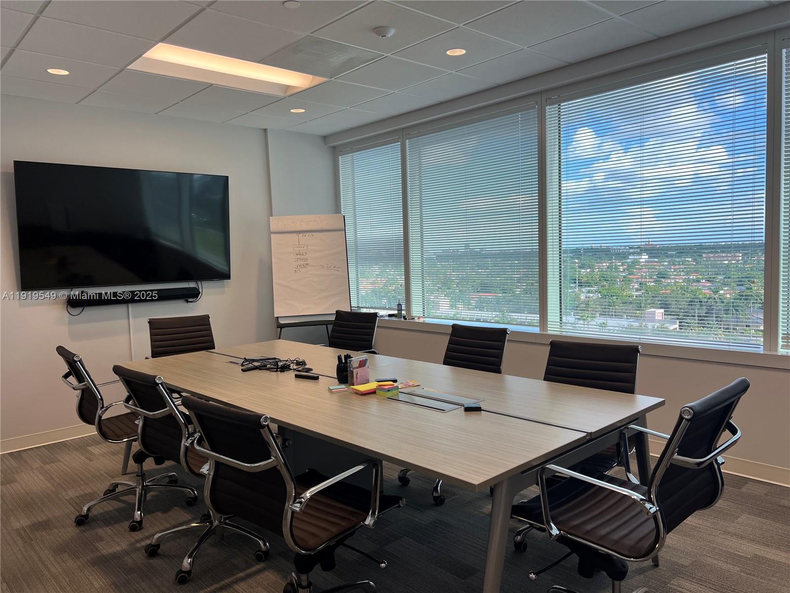 Corner office space available for lease featuring abundant natural light, stunning views of the lake and Miami International Airport, modern upgrades throughout, an open kitchen area, five glass-partitioned offices with a central cubicle zone, and negotiable furnishings. This plug-and-play space offers approximately 2,930 RSF, with a flexible asking rate of $35.00 PSF plus approx. NNN $15.83 PSF and lease term available through December 2027.
