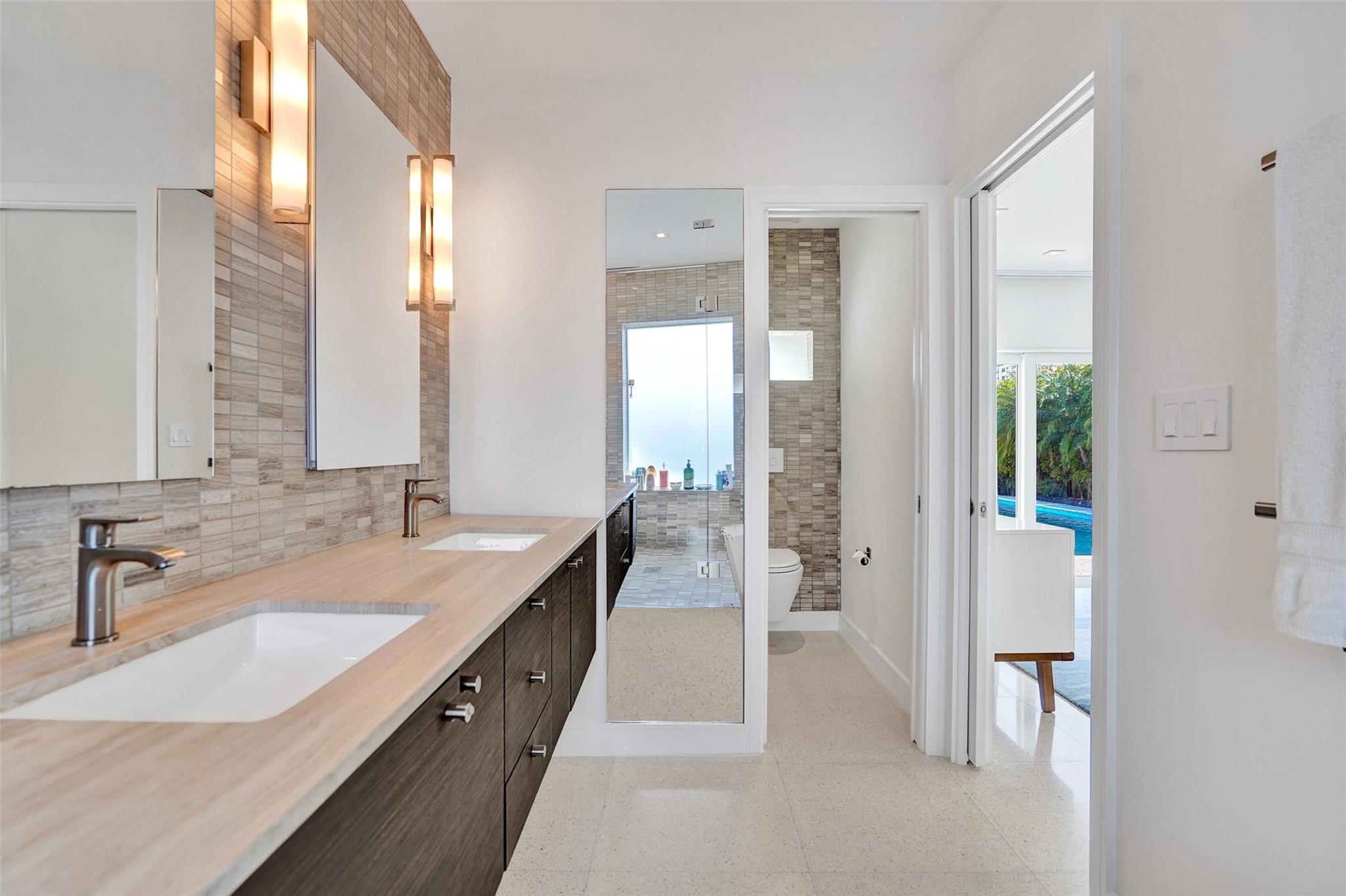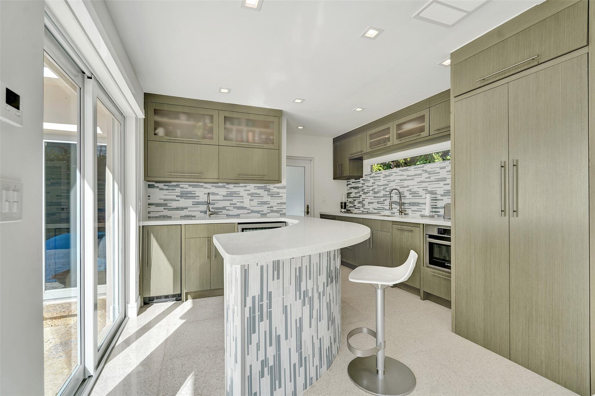 Annual rental in Coral Ridge. True 4 Bedroom, 3.5 Bath pool home with one car garage. Fully remodeled house with heated pool, Impact windows and newer Kitchen and Baths. Unfurnished. Spacious master Suite wtih 2 walk in closets with built ins. Den is perfect office or small gym and has private half bath. The 4th Bedroom is an attached "Guest House" with private bath, washer/dryer and full kitchen that also has a separate entrance (no subletting). Owners maintain pool and lawn. Managed by a professional property manager. Tesla charger. This house is clean and in pristine condition. Tenant to provide proof of income with application. Bayview school district. Close to the beach, parks, public tennis and pickelball courts and Galleria Mall.