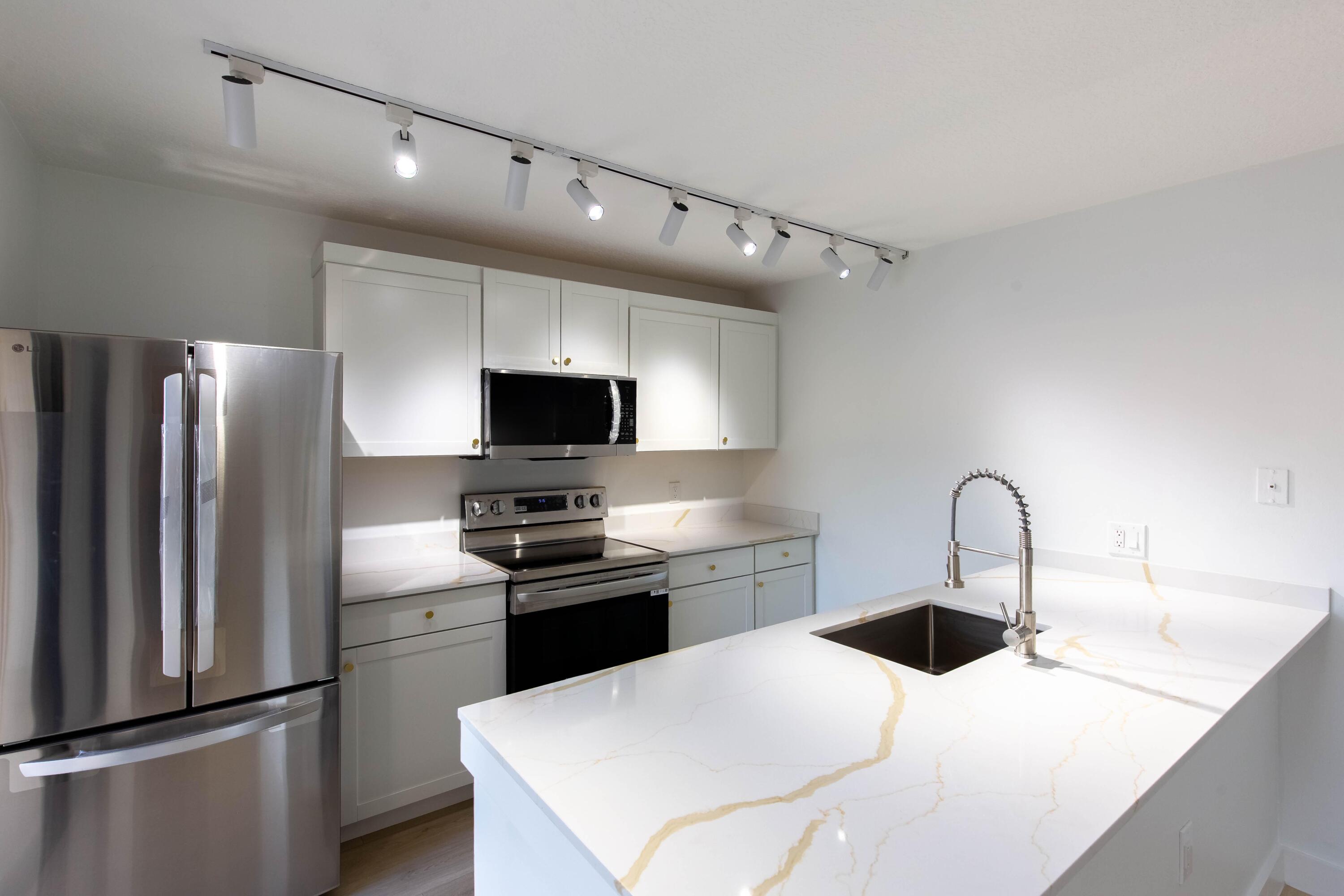 Live the South Florida lifestyle in this beautifully renovated 2-bedroom, 2.5-bath townhouse, perfectly situated in vibrant West Palm Beach. Step inside to find a light-filled space featuring warm honey oak floors throughout and an open-concept layout designed that flows into the private patio. The kitchen is a showstopper--quartz countertops, new stainless steel appliances, wood shaker cabinets, and a sleek single basin sink give it a clean, modern feel. Guest bathroom features a custom shiplap wall, new washer and dryer, and wood shelving. Upstairs, retreat to two spacious bedrooms with en-suite bathrooms, each upgraded with floating vanities, updated fixtures, and a spa-like atmosphere. Custom barn doors adorn the closets giving it a special touch!