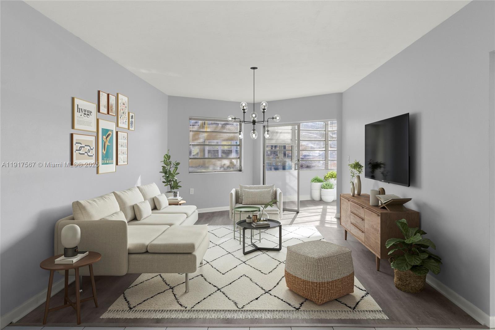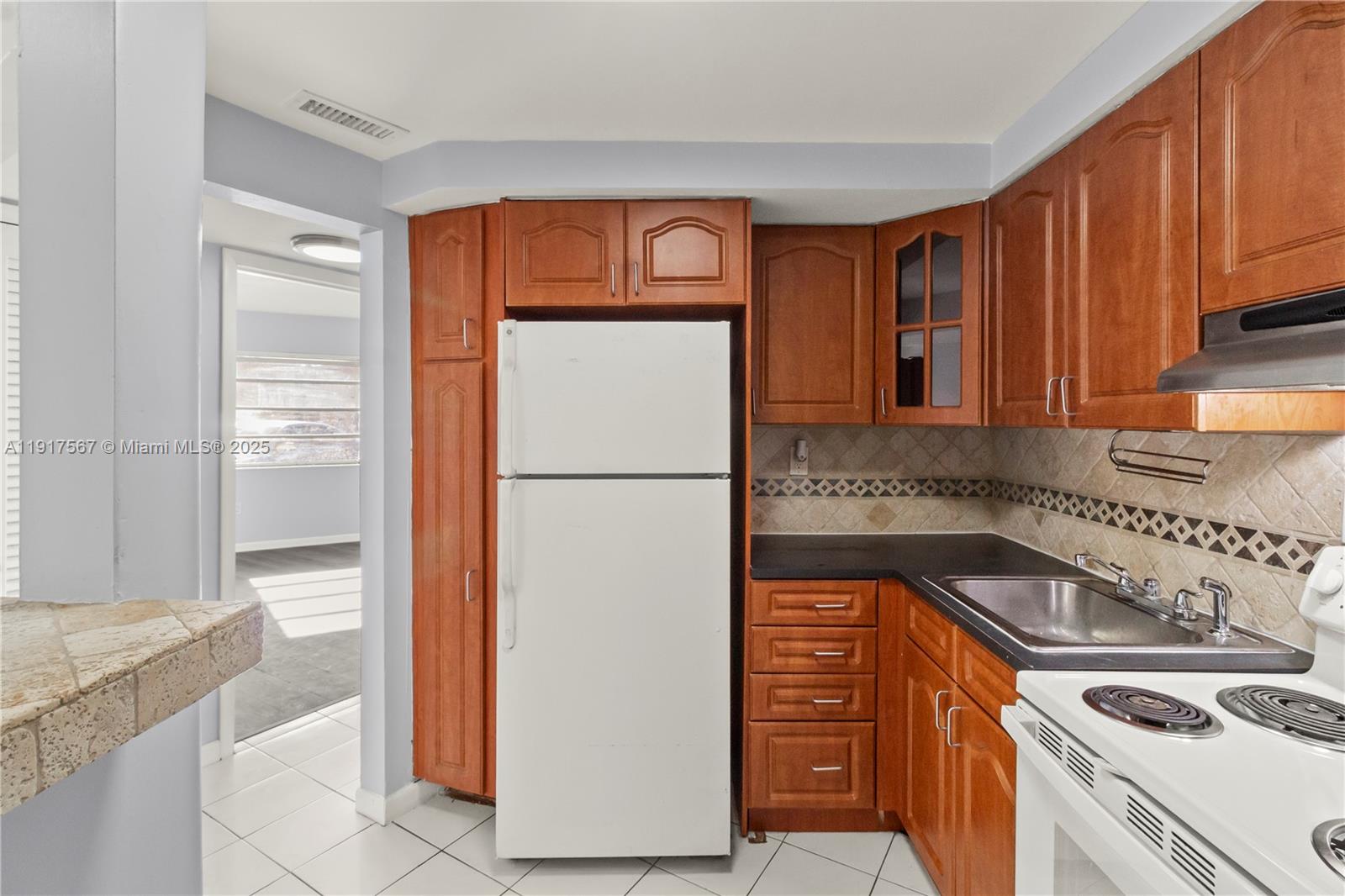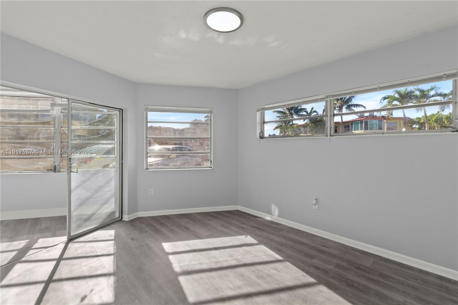 Sunlit 1BR + den in Sky Lake Gardens. This ground-floor residence offers large windows, a functional layout, and a bright Florida room/den. The kitchen features wood cabinets and an electric range, and the bathroom includes a bathtub and window. Additional highlights include tile and vinyl flooring, central A/C, and ample closet space. Laundry is located just outside the unit, and one assigned parking space is included in the monthly rent. Convenient North Miami Beach location across from Sky Lake Mall, with easy access to highways, shopping, dining, and nearby parks.