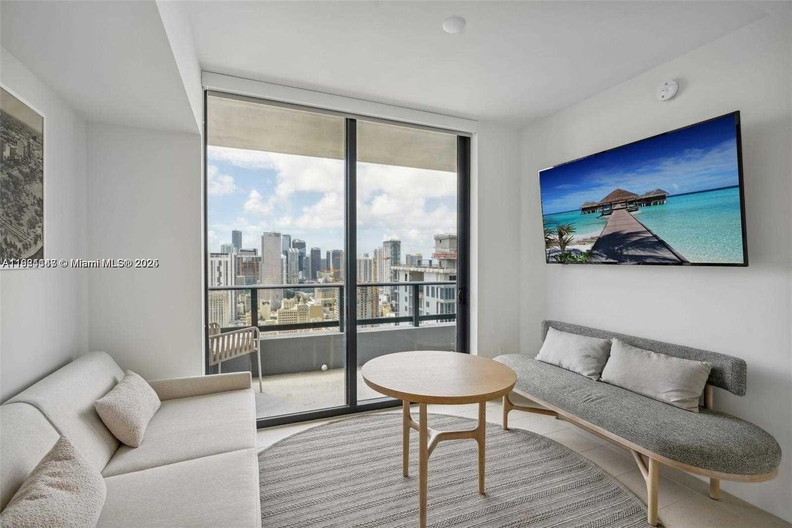A distinctive and luxurious furnished 1-bedroom, 1-bathroom residence available for short-term/daily rentals in the vibrant heart of Downtown Miami. This newly constructed unit boasts sweeping views of the Miami skyline and Biscayne Bay, highlighted by soaring ceilings and expansive floor-to-ceiling windows. Thoughtfully designed for modern living, the smart building offers advanced technology and high-speed internet. Residents enjoy an array of top-tier amenities, including a state-of-the-art fitness center, resort-style pool and spa, social lounge, kids' playroom, sauna, and three on-site dining venues.