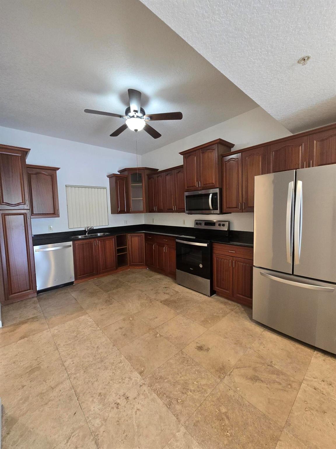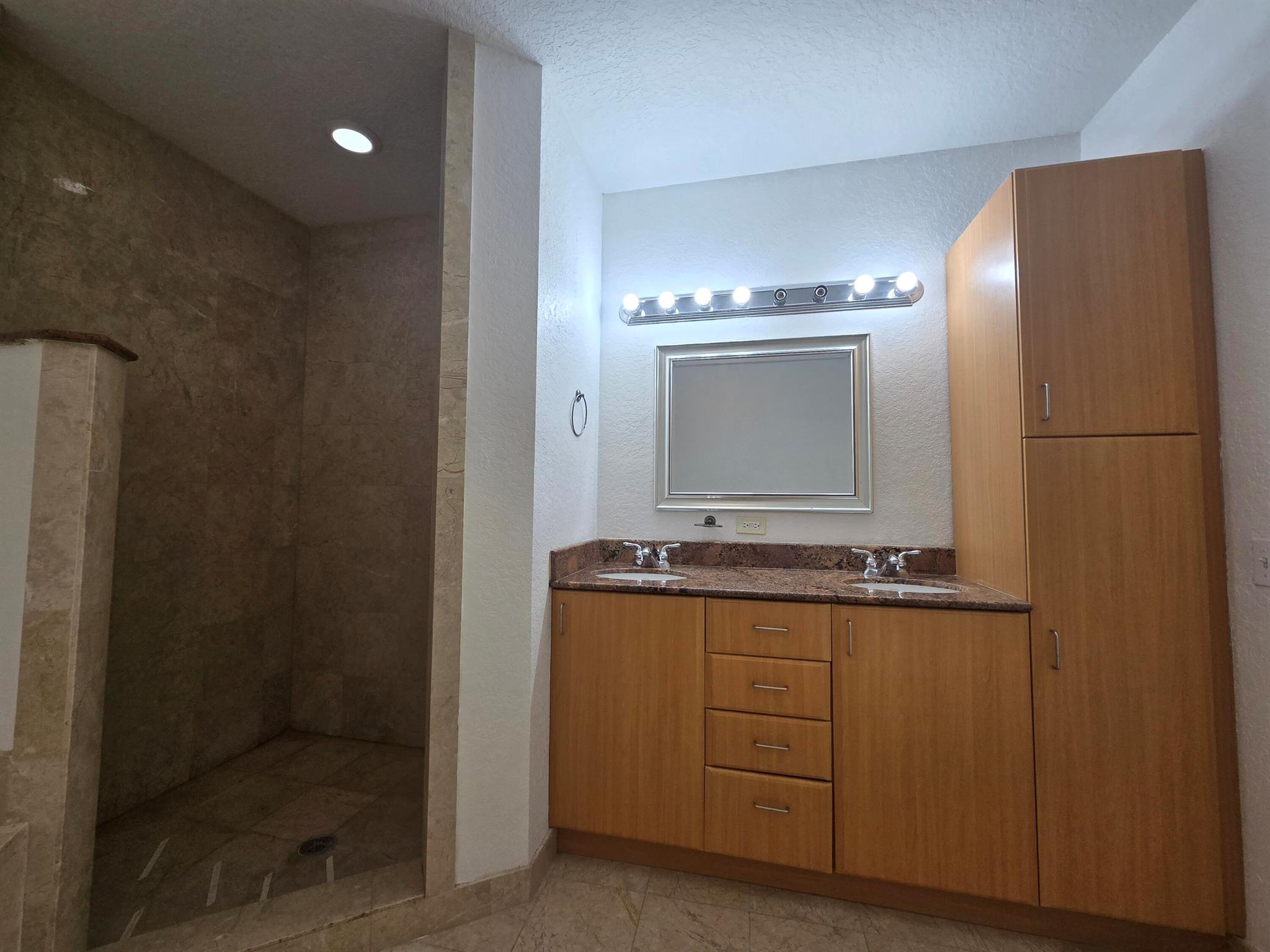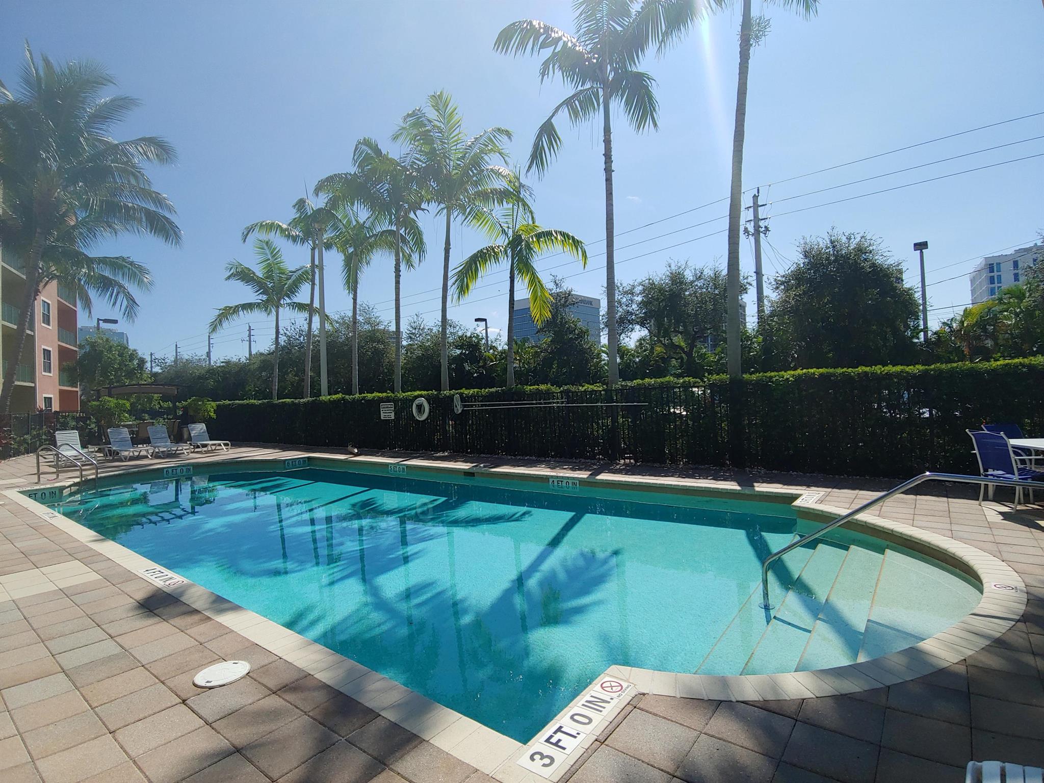 Luxury ground floor spacious 3/2 in resort style development in the heart of WPB! Prime location within a walking distance to Palm Beach Outlets & Whole Foods; just off I-95, 10 min to Palm beach airport & to the hospital, just 3-4 miles to the downtown of WPB with intercostal & public beaches. Unit features newer stainless steel appliances & new W & D, freshly painted, spacious master bedroom with 2 walk-in closets, a master bath with separate shower & tub. Open floor plan with a great room & nice size patio, 10ft ceilings throughout , large kitchen with cherry wood cabinets, granite, eat-at countertop. Both guest bedrooms have ceiling fans & mirrored closets. Beautiful community facilities which were recently remodeled & upgraded: pool, sauna, gym, greeting rooms, etc.