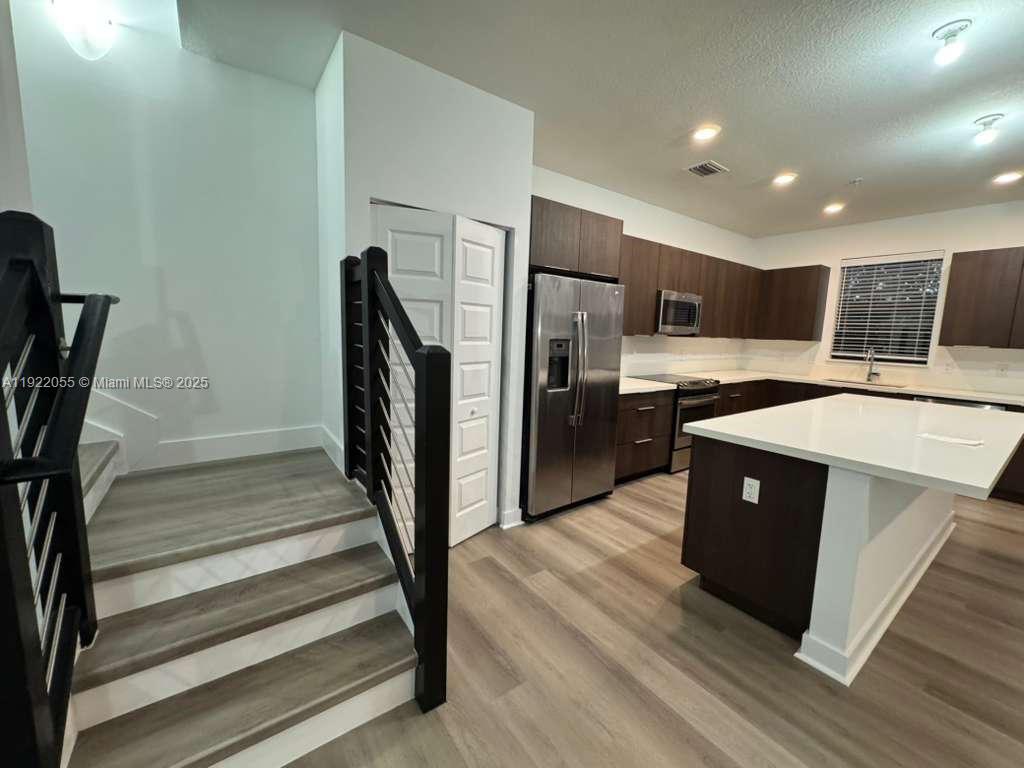 3 bedroom, 2.5 bathroom new townhome in Highland at Park Central. Private entrance leads to main level with open great room, dining room and gourmet kitchen. Kitchen with stainless steel appliances, quartz counters and breakfast bar area. Upstairs with open master bedroom, walk in closet, master bath with tiled backsplash, vanity with double sinks and clear glass shower. 2 other bedrooms with built in shelving in closets. Cable and High Speed Internet included. Top rated schools. Close to dining, shopping, Miami International airport and beaches.