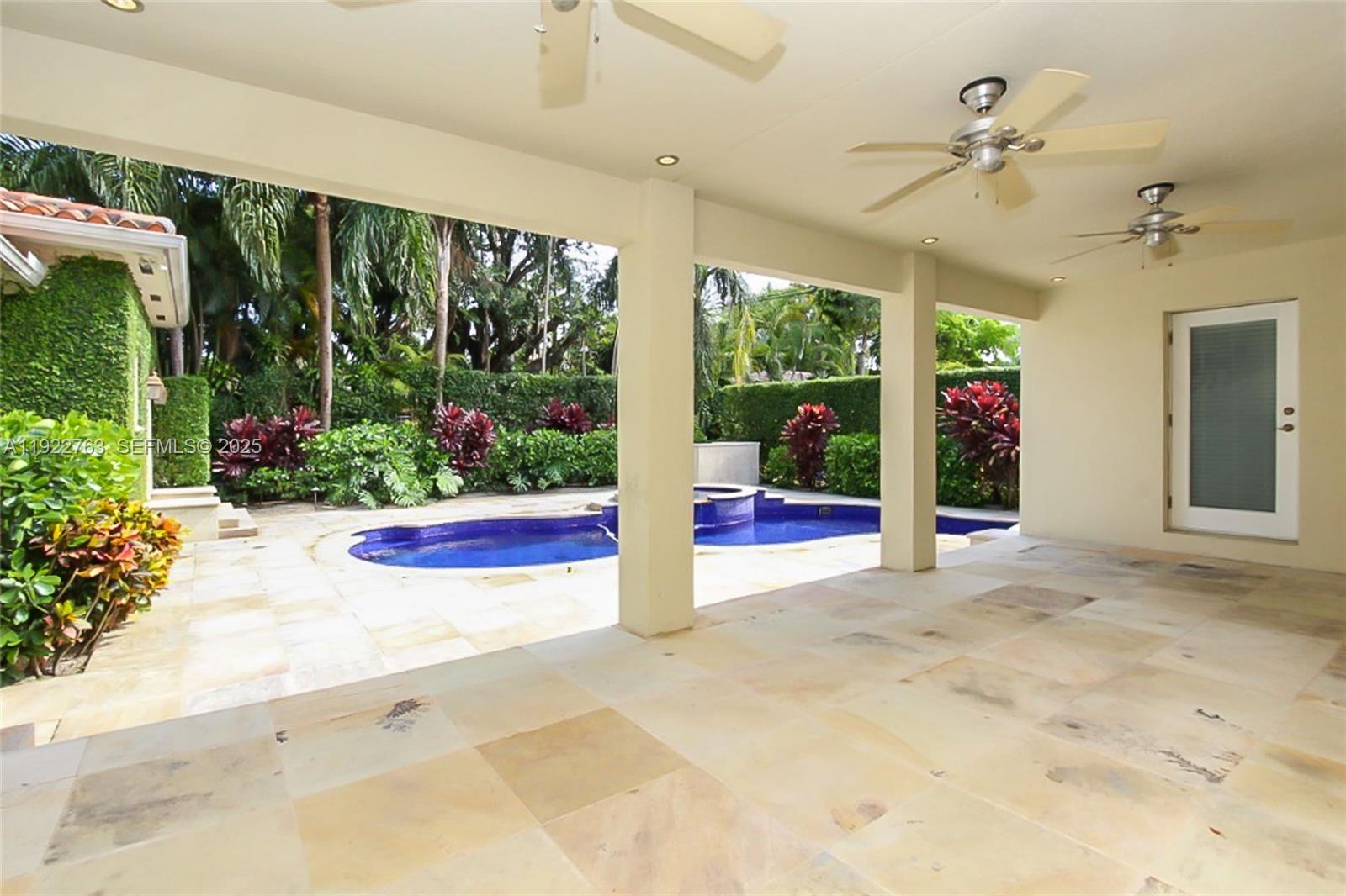 Exclusive corner estate on an oversized 10,800 SqFt lot. Brand-new roof and a striking double-glass pivot entry leading to a double-height foyer with natural limestone floors. Impact glass throughout and exceptional natural light enhanced by a cool, designer palette. Private Primary Suite with His & Hers walk-in closets plus a flexible office/playroom/lounge space. Chef-inspired gas kitchen. 1/1 guest or staff quarters and a spacious family/media room with soaring ceilings. Covered terrace opens to a private, resort-style pool. 1-car garage with covered parking. Quiet, tree-lined street in an exclusive neighborhood.