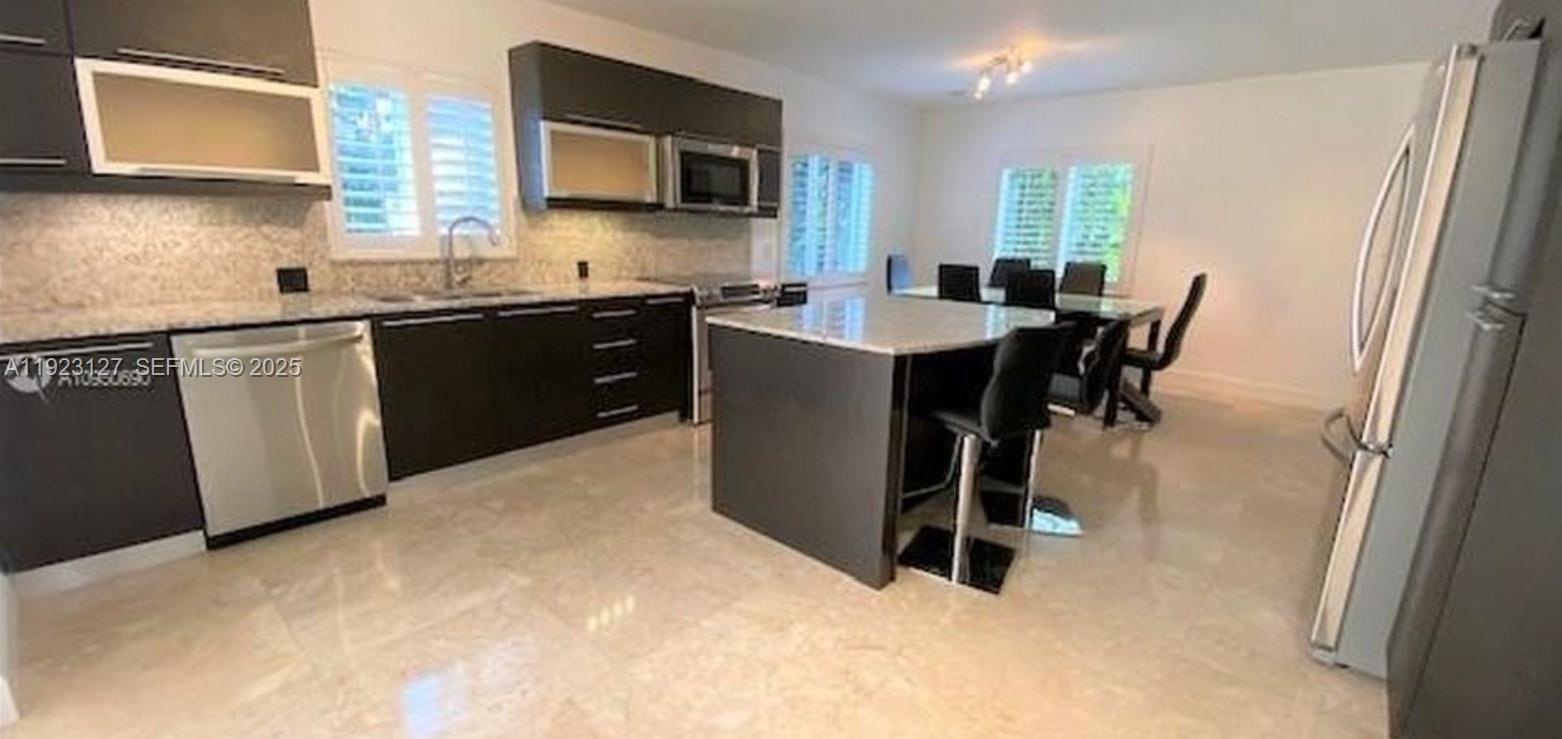 Welcome to this elegant 4 Bedroom and 4 Full Bathroom home (as per owner, not reflected in tax records) in the heart of Coral Gables, perfectly located on a peaceful street. Designed with comfort and sophistication in mind, the residence features stunning marble floors throughout the house with abundance of natural light. The specious master bedroom is located on the second floor, offering privacy and serene views of the pool and garden The home includes three additional bedrooms, ideal for family guests or home office. Enjoy a bright, open kitchen and living space that flows seamlessly to the outdoor area. Step outside to a beautiful sparkling pool, surrounded by lush landscaping-perfect for relaxing or entertaining. The property also includes a BBQ area ideal for weekend gatherings. Additional features includes, 2-car covered garage, laundry room front and back yard. This Coral Gables rarely available gem blends elegance, comfort, and Florida outdoor living at its best. Also Brand new impact windows throughout the entire house!