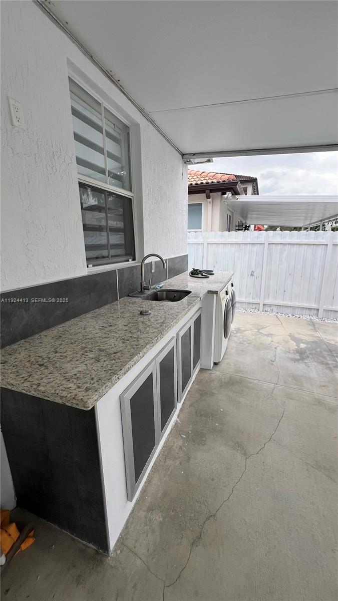 Beautiful and spacious 3/2 single-family home, fully upgraded with modern finishes. Enjoy a large outdoor patio featuring a built-in kitchen/BBQ area- perfect for entertaining. Home offers a remodeled kitchen with stainless steel appliance and quartz countertops, porcelain floors, a large terrace, and a fenced patio for added privacy. Rent includes water, electricity and lawn maintenance adding exceptional value. Property will be available January 1st to move in! Show it with confidence. It will not last!1
