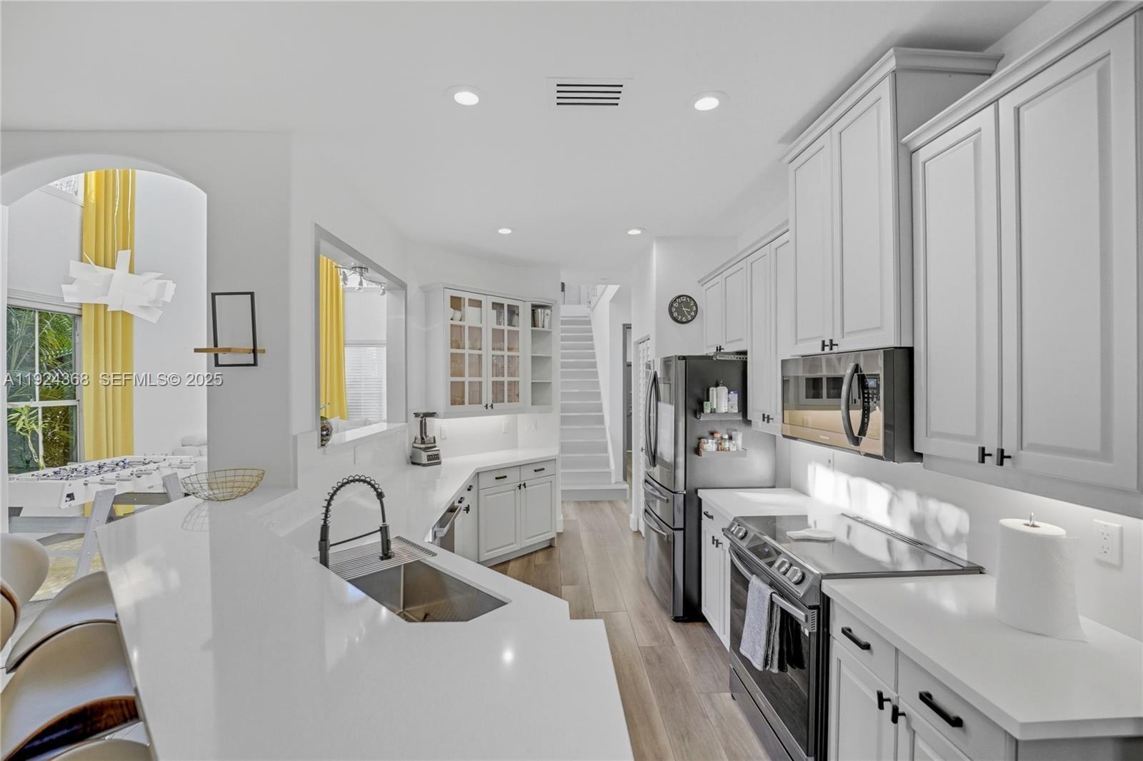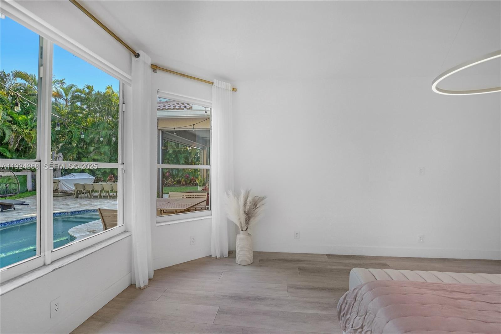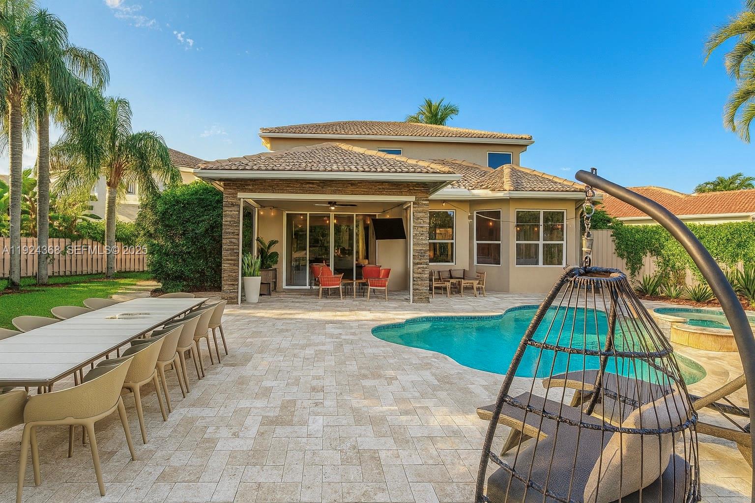 Beautiful home in a gated community. 4 bedrooms and 2.5 bathrooms, 2 car garage. Updated throughout, gourmet kitchen with quartzite counter tops and new Samsung black stainless appliances featuring a smart refrigerator. The vast master suite is located on the first level and 3 guest bedrooms are located on the second level with a large loft section. The spacious layout, along with the lofty ceilings from the entry to second level provides you with lots of natural light. The private backyard offers a saltwater heated swimming pool with travertine deck. High end Vinyl planks flooring, tankless water heater, EV charger station. Can also be rented fully furnished.