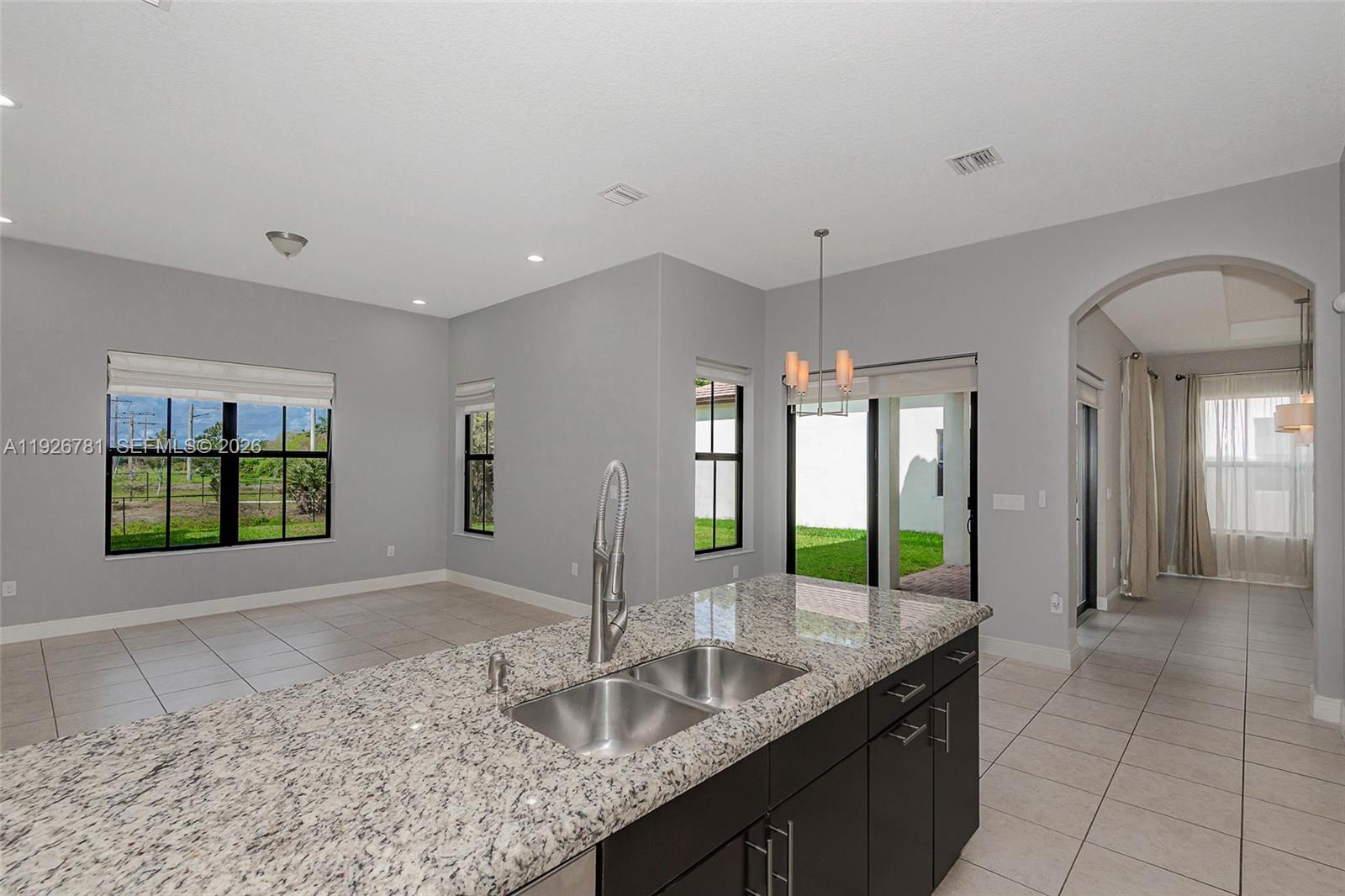 Make your new home this spectacular two-story home with stunning water views from its front and the backyard in the prestigious Monterra. Impact windows, hurricane doors & garage, reinforced roof. No carpets, tile downstairs, and laminated floors upstairs. Pets welcome! 3 spacious bedrooms and 2 bathrooms upstairs. On the first floor, you will find 1 bedroom that can also be used as an office, with a full bathroom. 12-foot ceilings, Oversized kitchen and pantry, spacious, relaxing, open areas. Inside the amazing community of Monterra, offering resort-style amenities including pool, water park, tennis and basketball courts, fitness center, dog parks, jogging trails, and much more. Excellent schools. The rent includes basic landscaping!