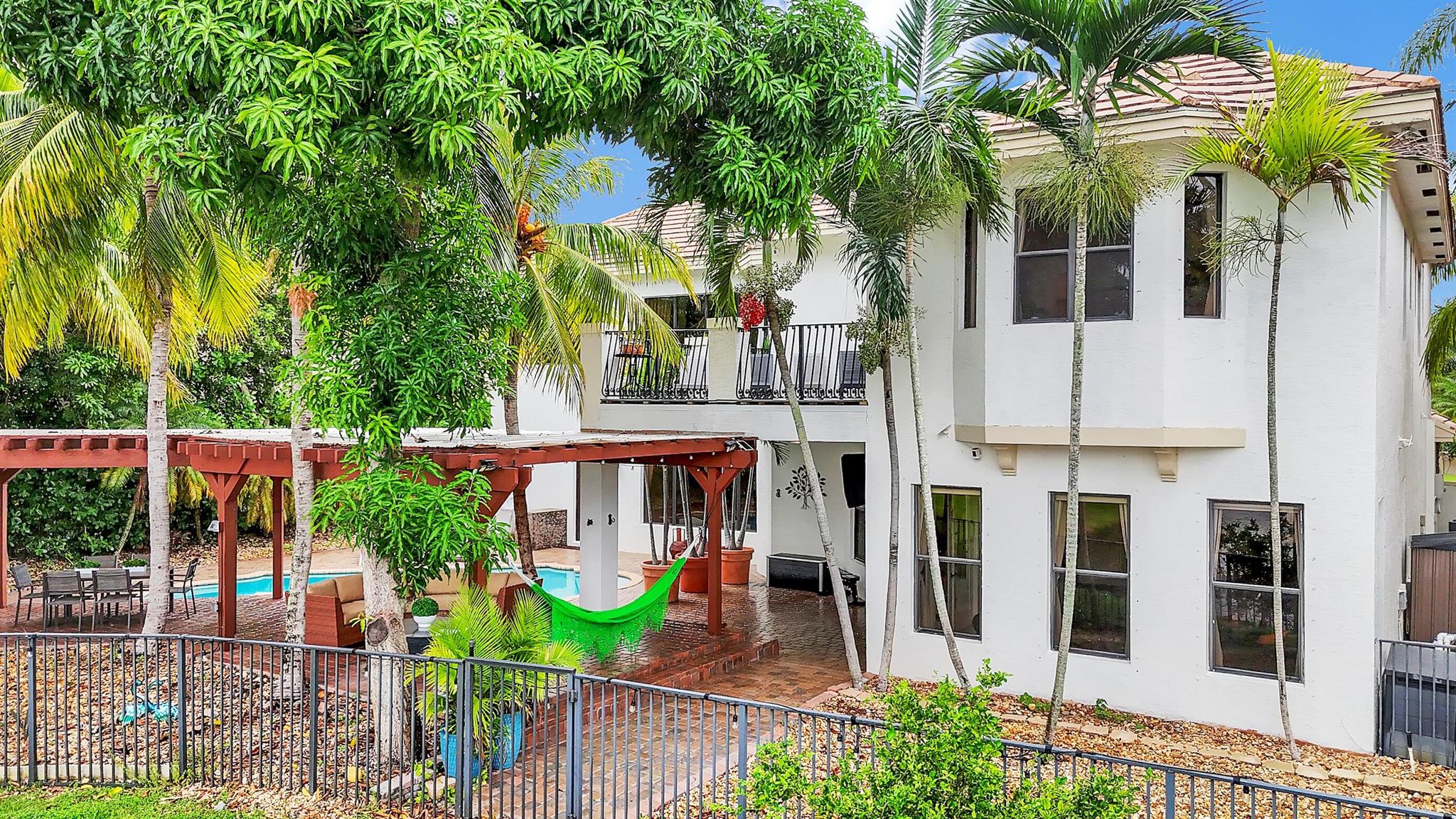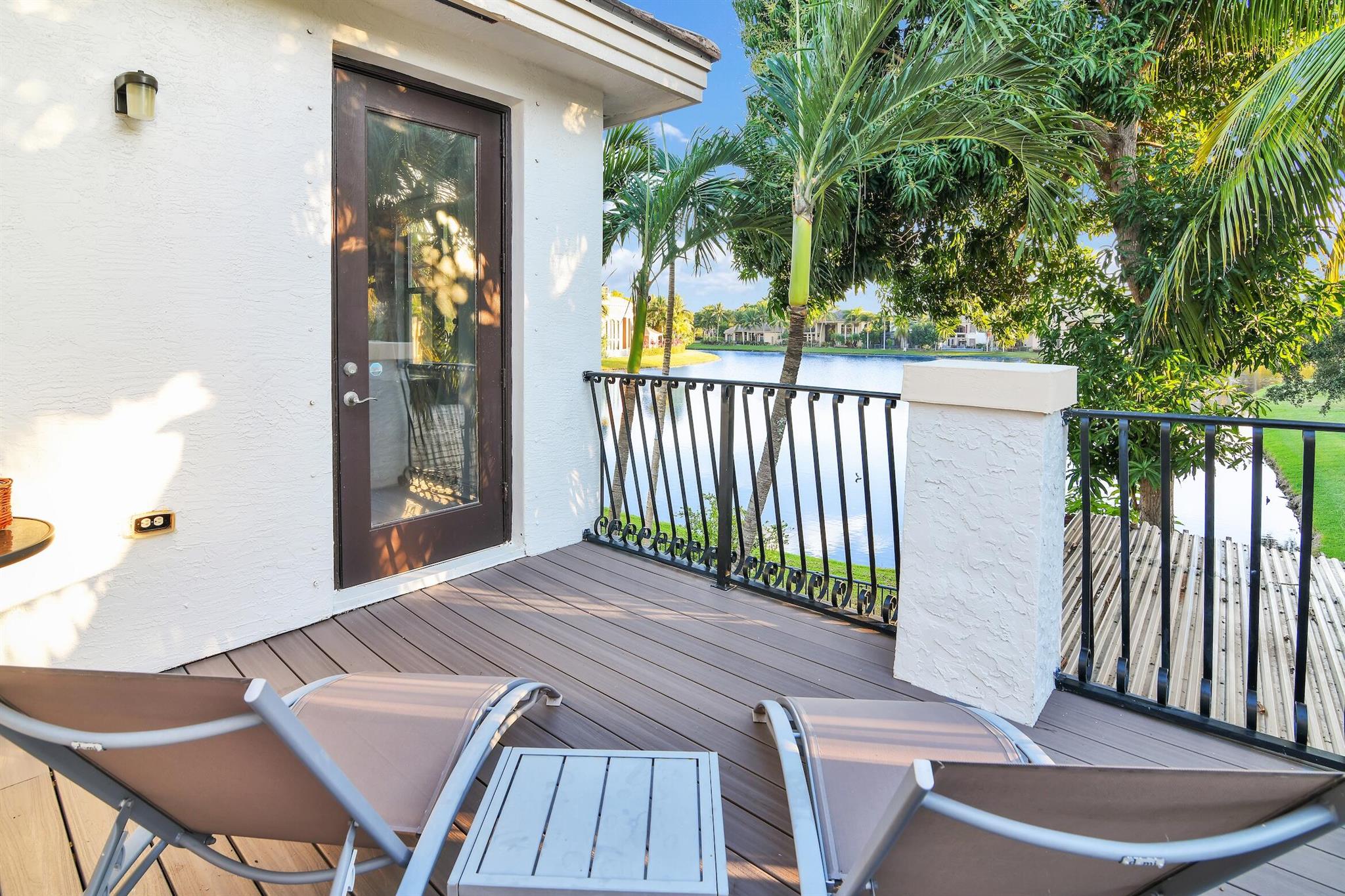 Set on a serene lakefront lot within Wellington's coveted Versailles community, this estate offers a lifestyle of comfort and sophistication. The backyard is the showpiece of the home, highlighted by a sparkling pool, relaxing spa, private gym area, and a hammock nook perfectly positioned to enjoy the water views. Indoors, the floor plan is designed for both work and entertaining, featuring a dedicated Library/office, a media/meeting room, a generous lounge, and a stylish bar that connects to the gourmet kitchen. Upstairs, the primary suite provides a peaceful escape with its own terrace overlooking the palms and lake. With 6 additional bedrooms, one office, warm wood elements, and custom-crafted storage throughout, the home provides abundant space and refined detail.