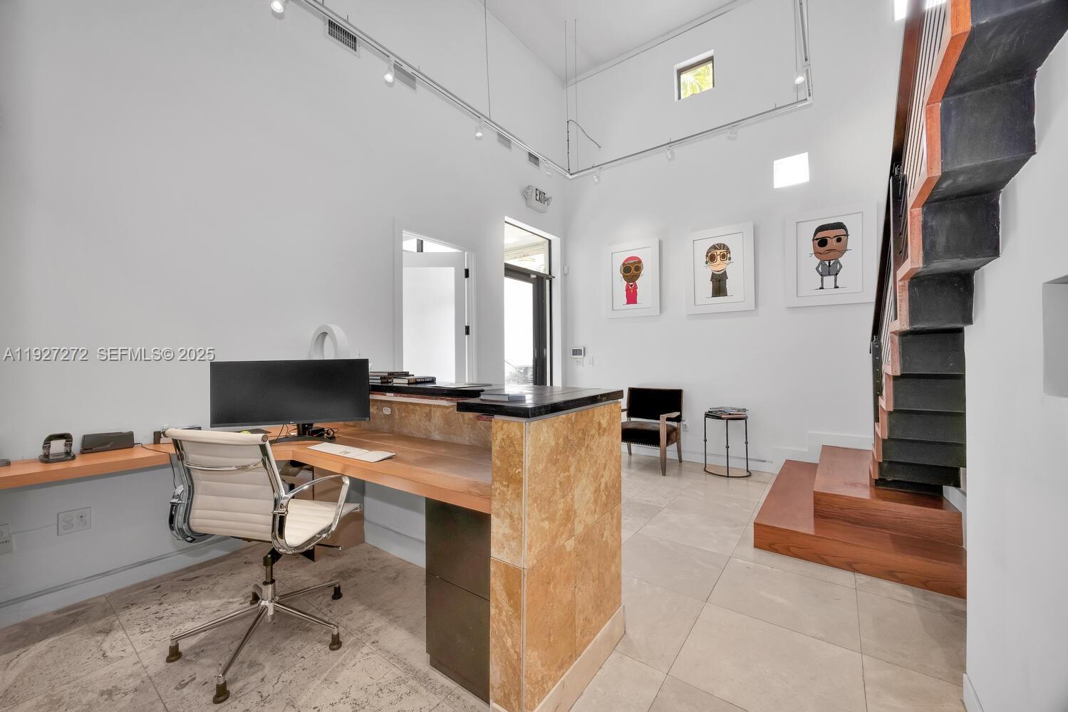 Beautifully renovated and modern freestanding office building in Coral Gables with private parking lot. 1,317 SF +/- available for Lease and immediate occupancy. A former architect’s office, the space includes custom workstations, reception area with soaring, light-filled 20 ft ceiling, kitchen, conference room, private offices, 2 rest rooms, plenty of storage, and outdoor patio space behind the building. Private parking lot allows for no hassles and easy access, plus additional street parking. Exclusive building signage rights are available. Easy access to all points in Miami, Coconut Grove, and Coral Gables. See floor plan included with photos.
