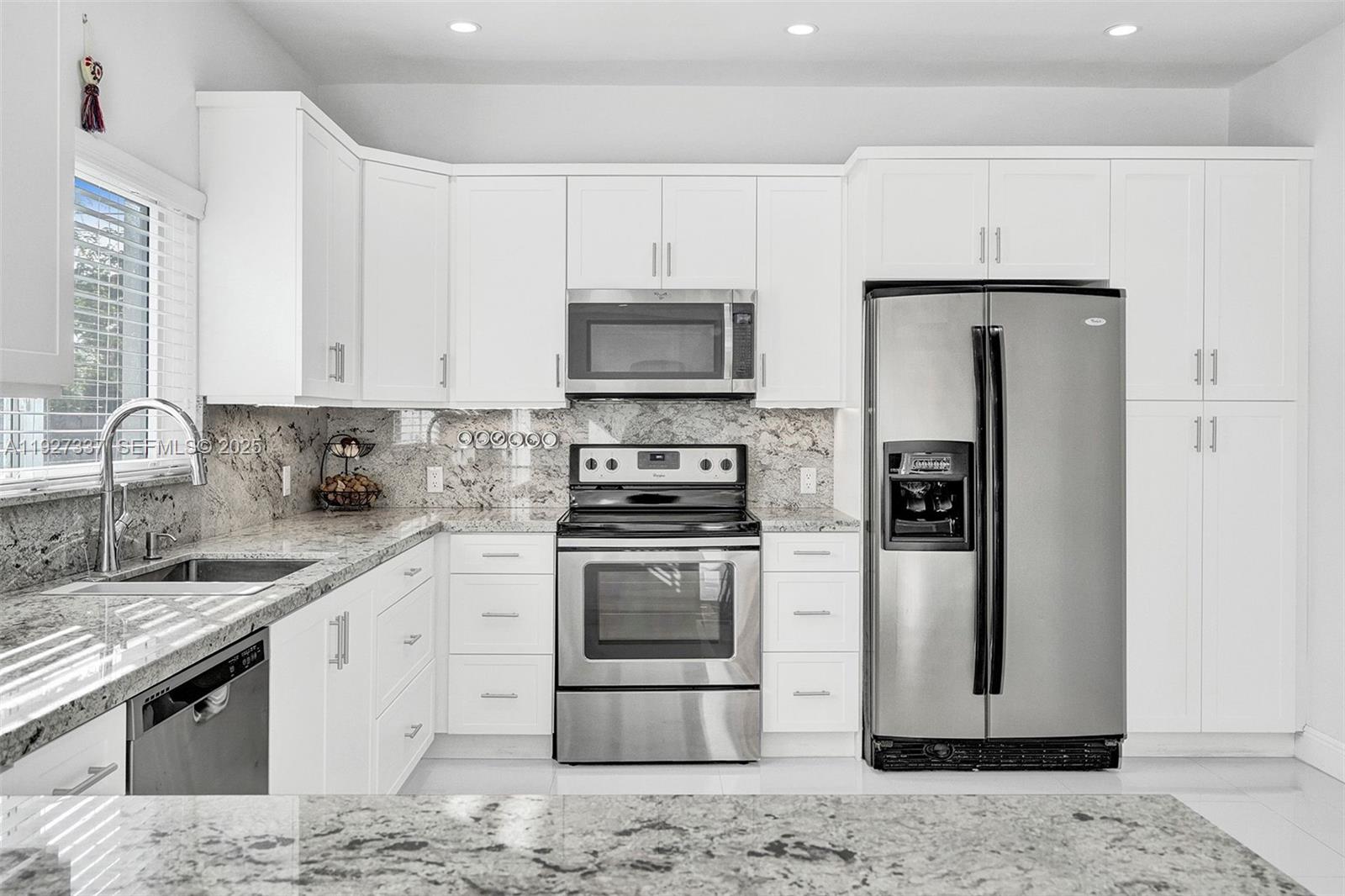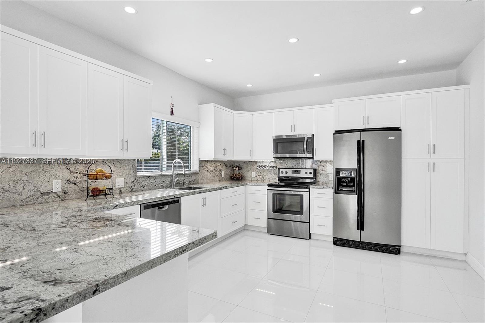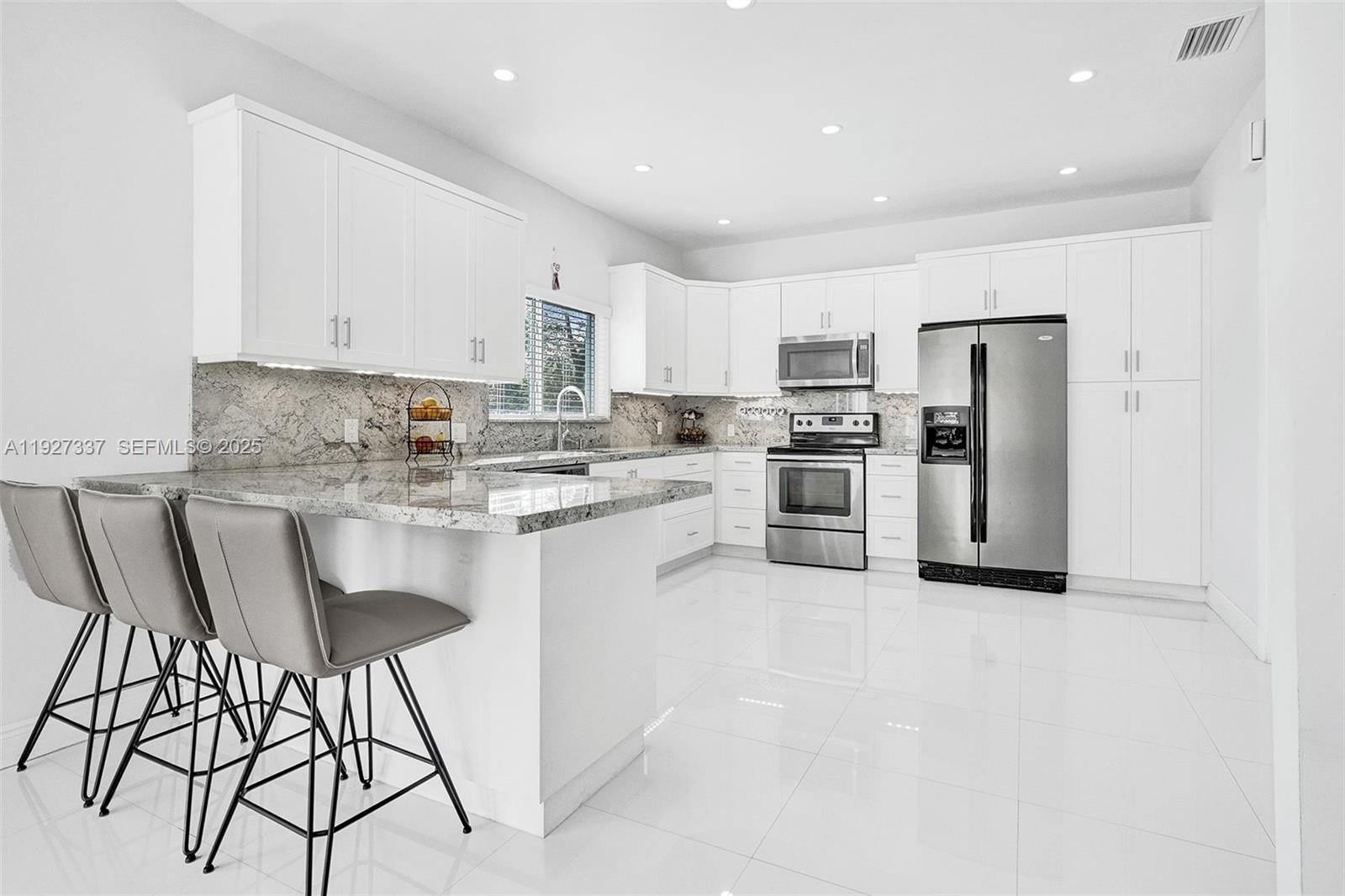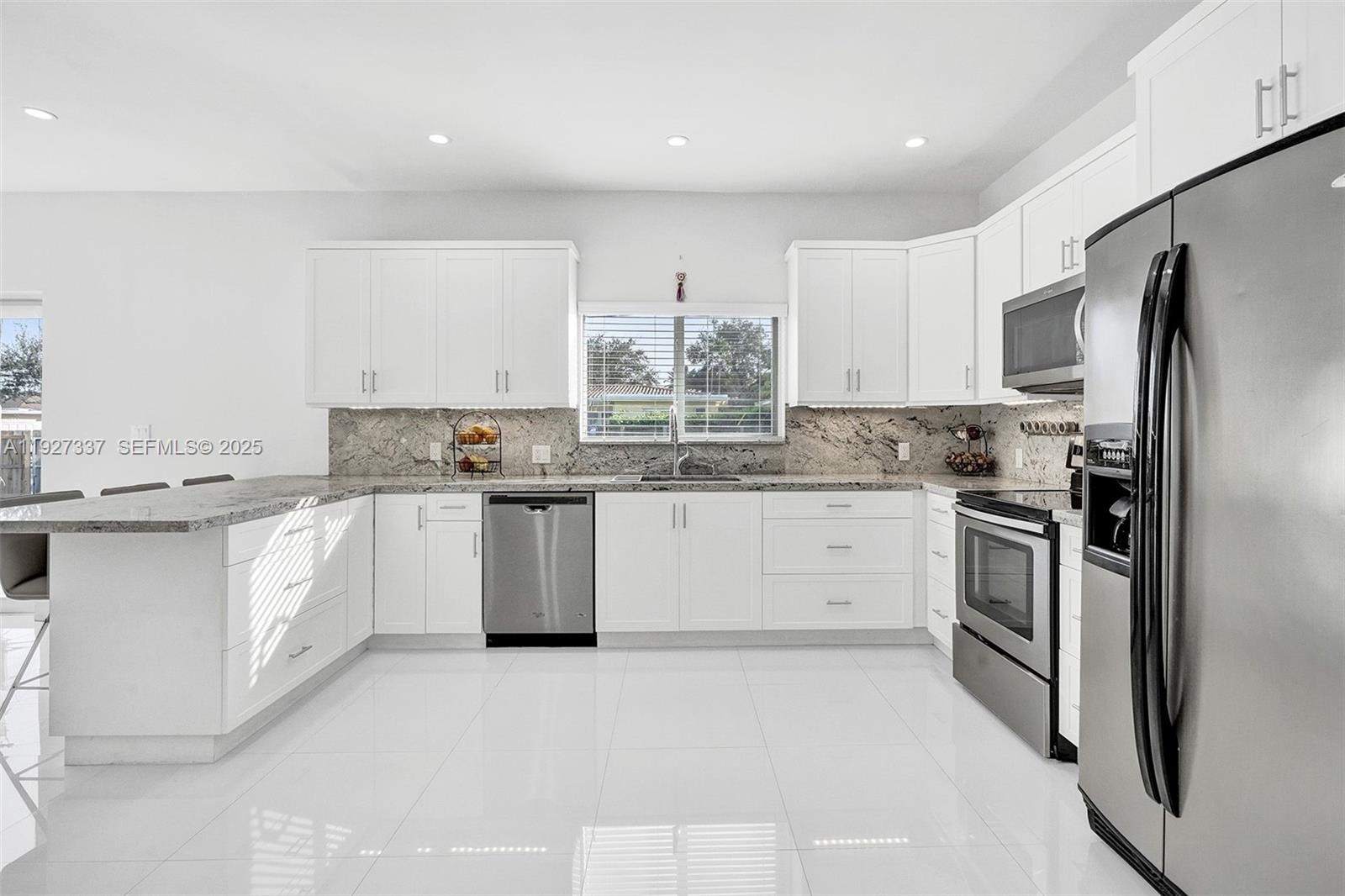 Completely remodeled corner pool home with an open floor plan, owners thought of all details when remodeling this beauty. Impact windows and doors, porcelain tile throughout, wood flooring in bedrooms, updated kitchen cabinets with plenty of storage space, granite countertop and backsplash, each bedroom with their own private bathroom, cabana bath, pool, safety fence around pool, oversized laundry room with additional cabinet storage, camera system, walk-in closets, wood fence around entire property. This property is a must see, show and rent.