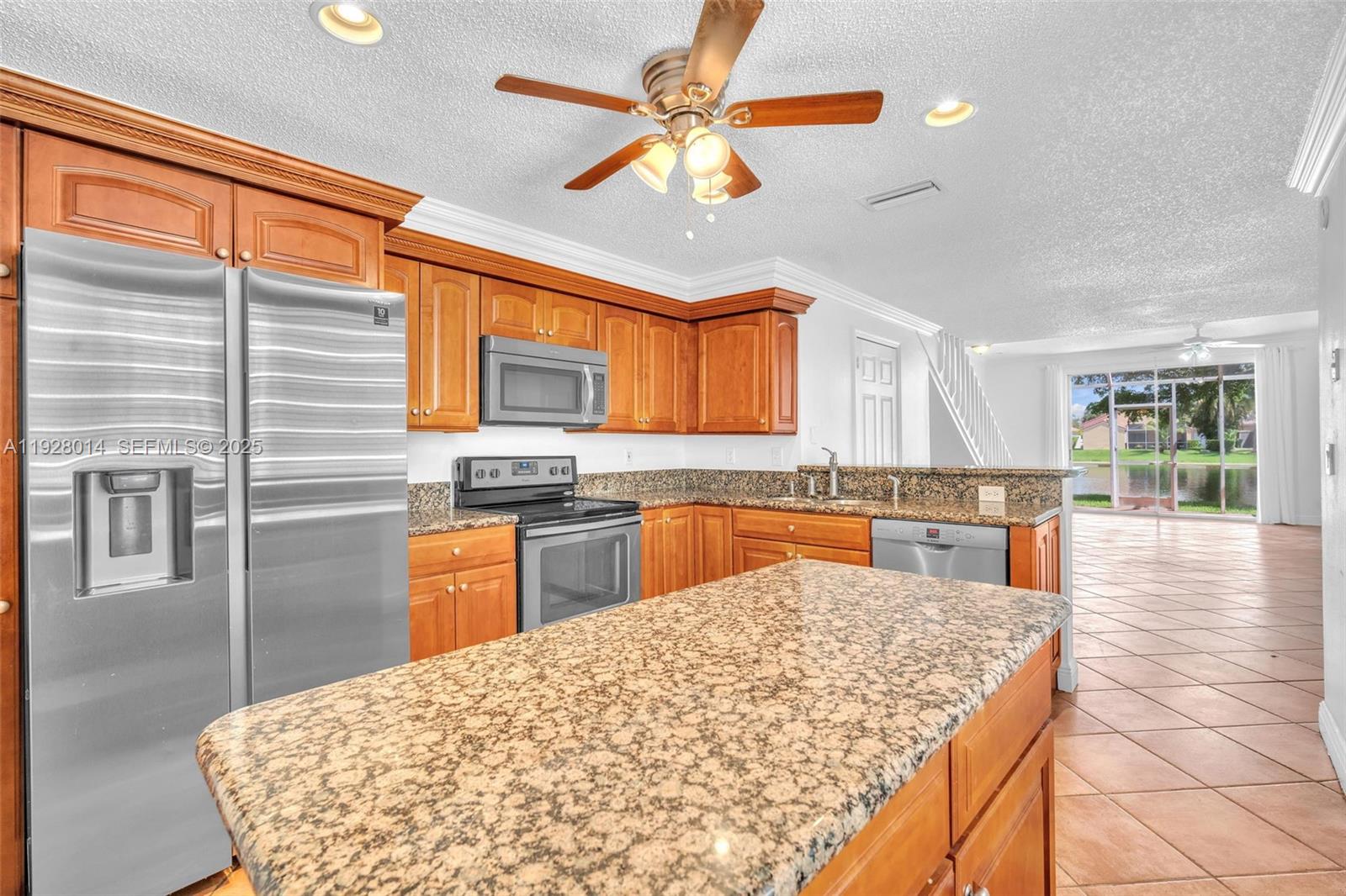 Beautiful Townhouse 3 bedrooms 2 1/2 bathrooms in the desirable San Remo gated community, just painted, ceramic floors downstairs and laminated wood second floor, kitchen wit wood cabinets and granite counters. Screened patio with a gorgeous lake view Community pool, playground and basketball courts. Great A+ schools. Close access to I-75, State Rd 84 & 595.