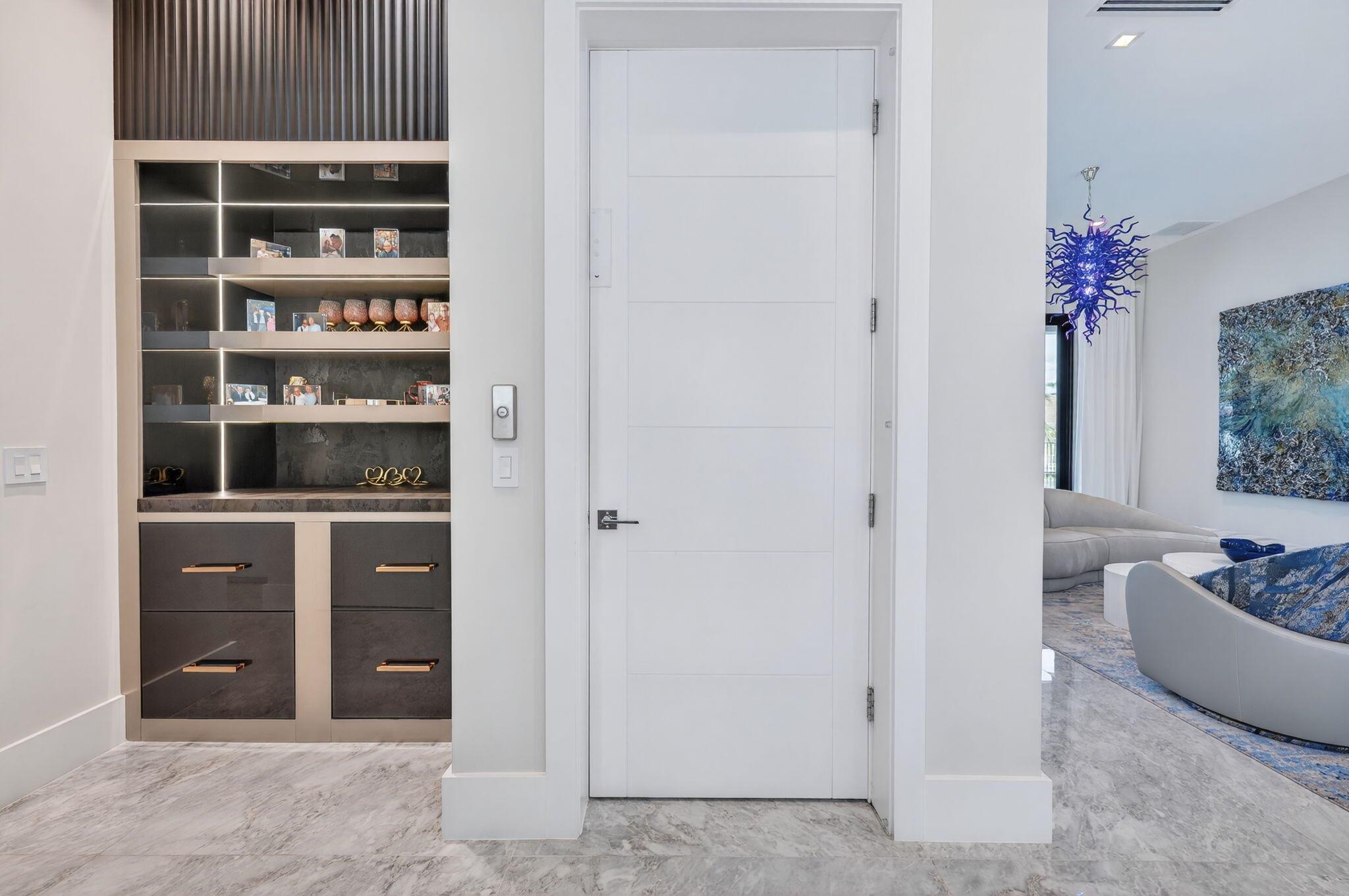 Exquisite Waterfront Estate with Unrivaled Luxury Finishes. Experience modern waterfront living in this magnificent newer-construction residence, showcasing a brand-new seawall and extraordinary high end craftsmanship. Upon entry, you're greeted by a dramatic illuminated marble feature wall and custom floating staircase--a stunning architectural centerpiece. The open-concept living spaces are highlighted by designer fixtures, impact-resistant windows, doors, and garage doors. 3 Carrier Infinity A/C systems for ultimate climate control. The chef's dream kitchen is a masterpiece featuring all Miele appliances, including oversized refrigerator units, two dishwashers, double ovens, speed oven, built-in coffee maker, pot filler, and induction all surrounded by exquisite custom cabinetry.