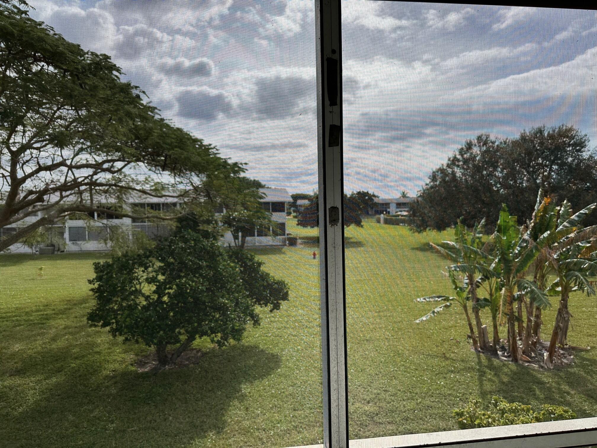 Welcome to this comfortable 1 bedroom, 1 bath condo on second floor located in Century Village, a lively 55+ community. This unit features laminate flooring throughout, 2 window A/C units and the entire wall in Master Bedroom is closet space. Enjoy the screened patio with lovely garden views off the bedroom. Century Village offers plenty of activities for the active lifestyle! Pools, fitness, tennis, courtesy bus, shows, just to name a few! Must be 55+