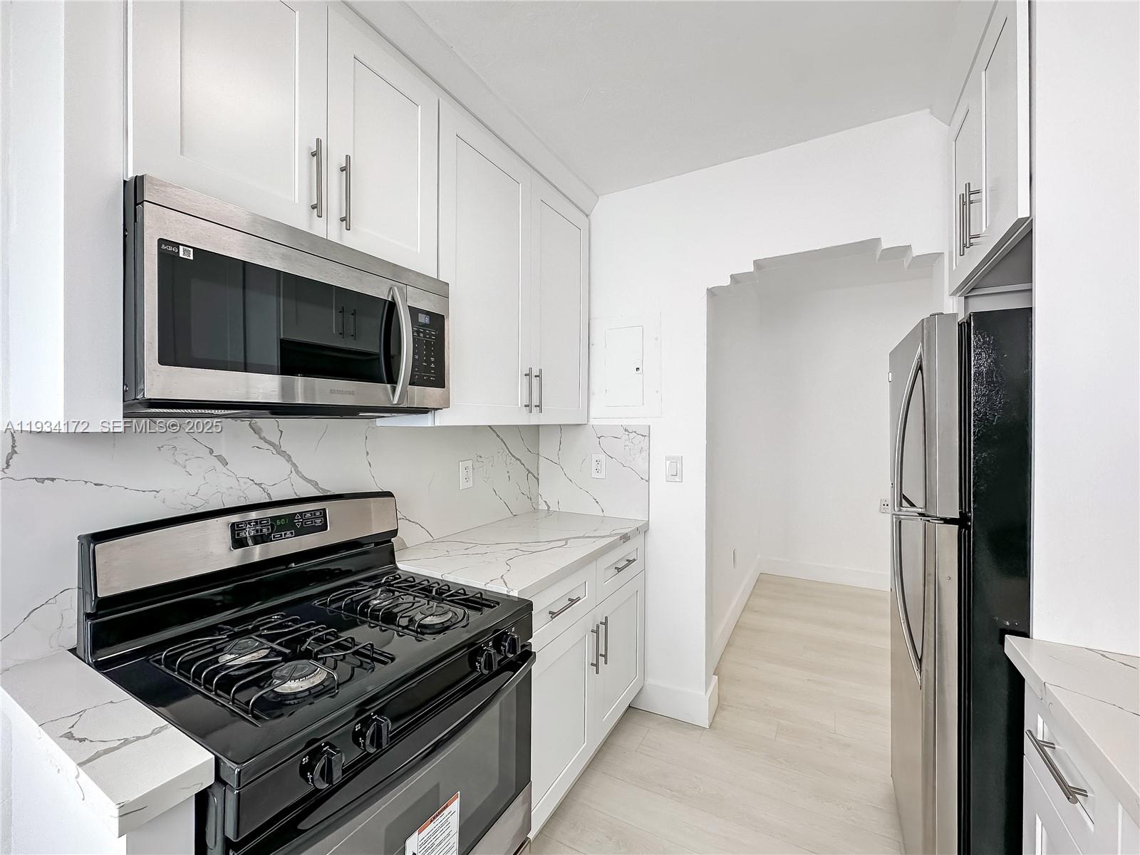 Brand new everything. Sparkling, immaculate and fully renovated top-floor unit featuring gleaming new floors, a gorgeous stainless steel and quartz kitchen with new cabinets, a dishwasher and gas range, impact windows and doors throughout, walk-in closets and a gorgeous bathroom blanketed in Italian porcelain. Incredible natural light in this unit and great outdoor space off the kitchen balcony. The building is impeccably maintained with laundry in back and a fresh paint job. The location could not be better on tree-lined Bay Drive, just steps to the posh Normandy Isle fountain, farmers market, sushi, gelato, happy hour spots and the beach. Call today, very easy to show and a very easy and fast approval process.