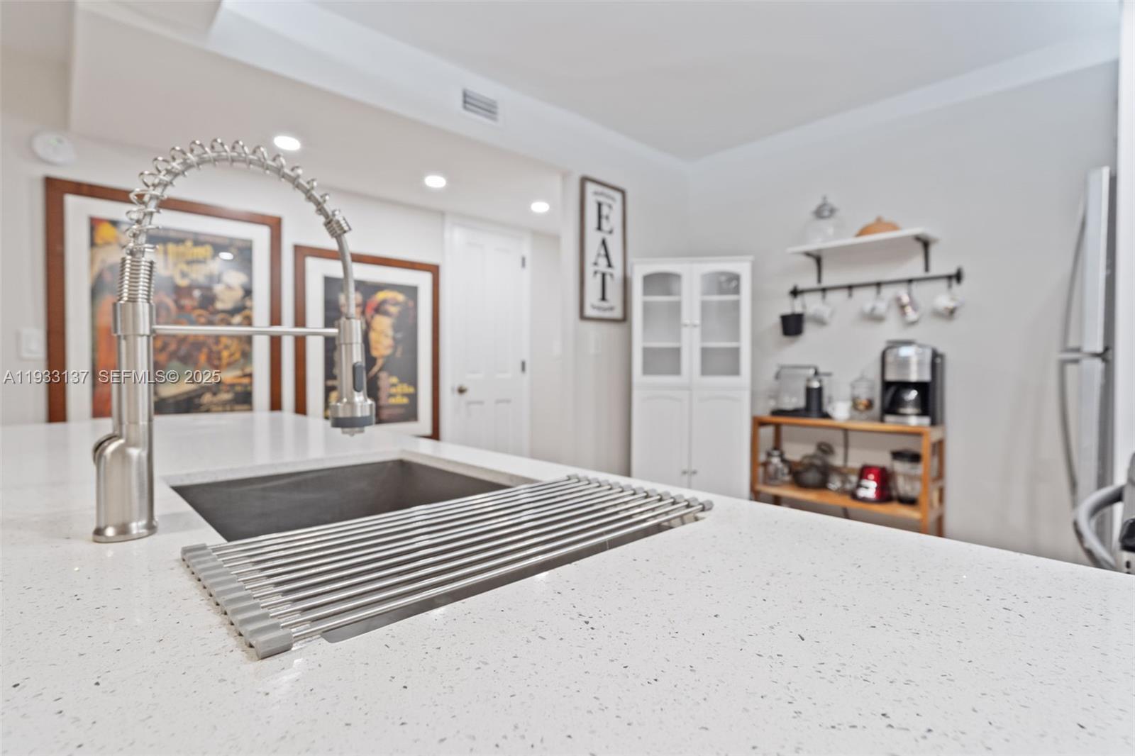 Granada Dadeland Condo. Find your nook amidst a thriving community in this condo apartment that was fully remodeled in 2023. Bright & modern, the home gleams w/sunshine & abundant lighting. Custom design detailing such as the terracotta tile + wood-look floors that add warmth, the lighted coffered kitchen ceiling that adds visual interest, stainless steel appliances + a built-in microwave oven & Shaker-style cabinetry that add chic on-trend style, a large bedroom, generous closet space & more create a comforting, practical, attractive space to call home. Sliding glass doors open to a private patio & a broad landscaped courtyard w/walking paths. The community provides several popular amenities incl. a clubhouse, swimming pool, sundeck & garden. Just 2 blocks to Dadeland Mall & the Metrorail.