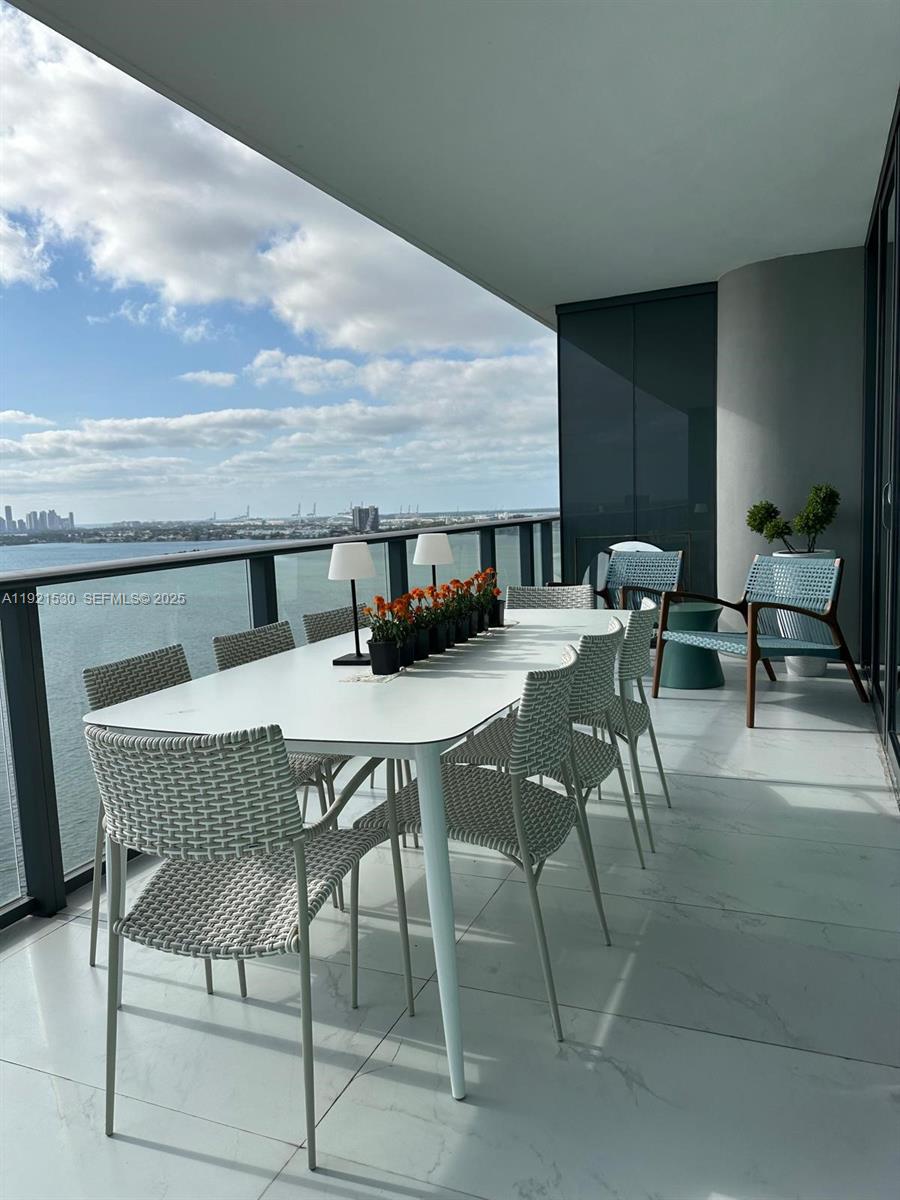Stylish furnished unit ideal for singles. One bedroom + den with flexible layout to host guests. Custom privacy panel in the master bath, indoor dining for 4, and outdoor dining for 8. High-end furniture by Saccaro and Natuzzi. Located in a full-service waterfront building with luxury amenities. Move-in ready!