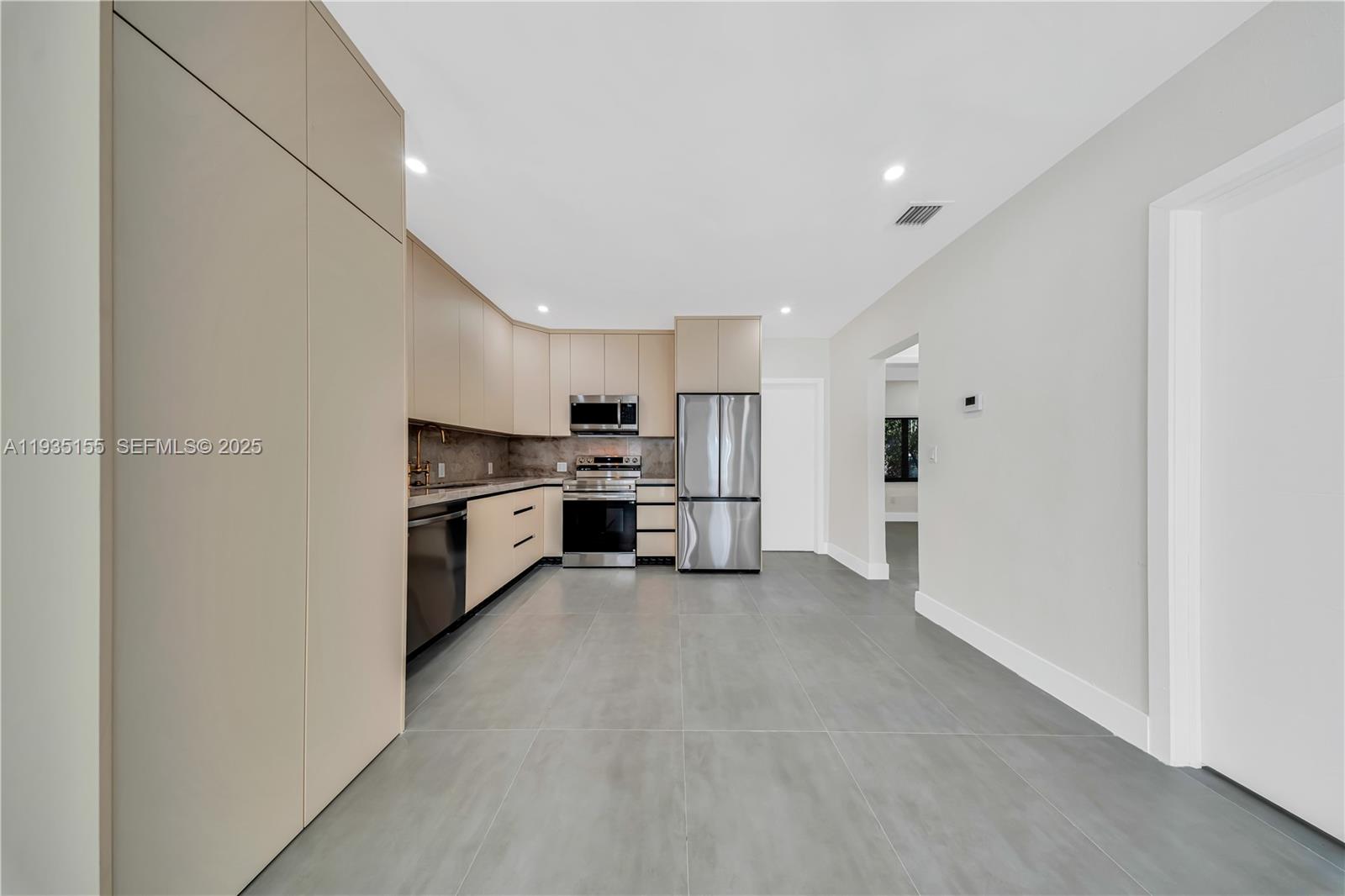 Fully Remodeled and Move-In Ready! This stunning 3-bedroom, 2-bathroom residence features an oversized, private backyard and has been thoughtfully upgraded with state-of-the-art features and luxurious finishes throughout. The home offers a modern chef’s kitchen with quartz countertops, high-end appliances, and custom cabinetry. Interior highlights include porcelain tile flooring, impact-resistant windows and doors, and elegantly designed bathrooms with refined details. The spacious primary suite boasts a custom walk-in closet, and a full washer and dryer add everyday convenience. Ideally located near Downtown, Wynwood, the airport, and more, this home perfectly blends style, comfort, and functionality in a truly central location.
