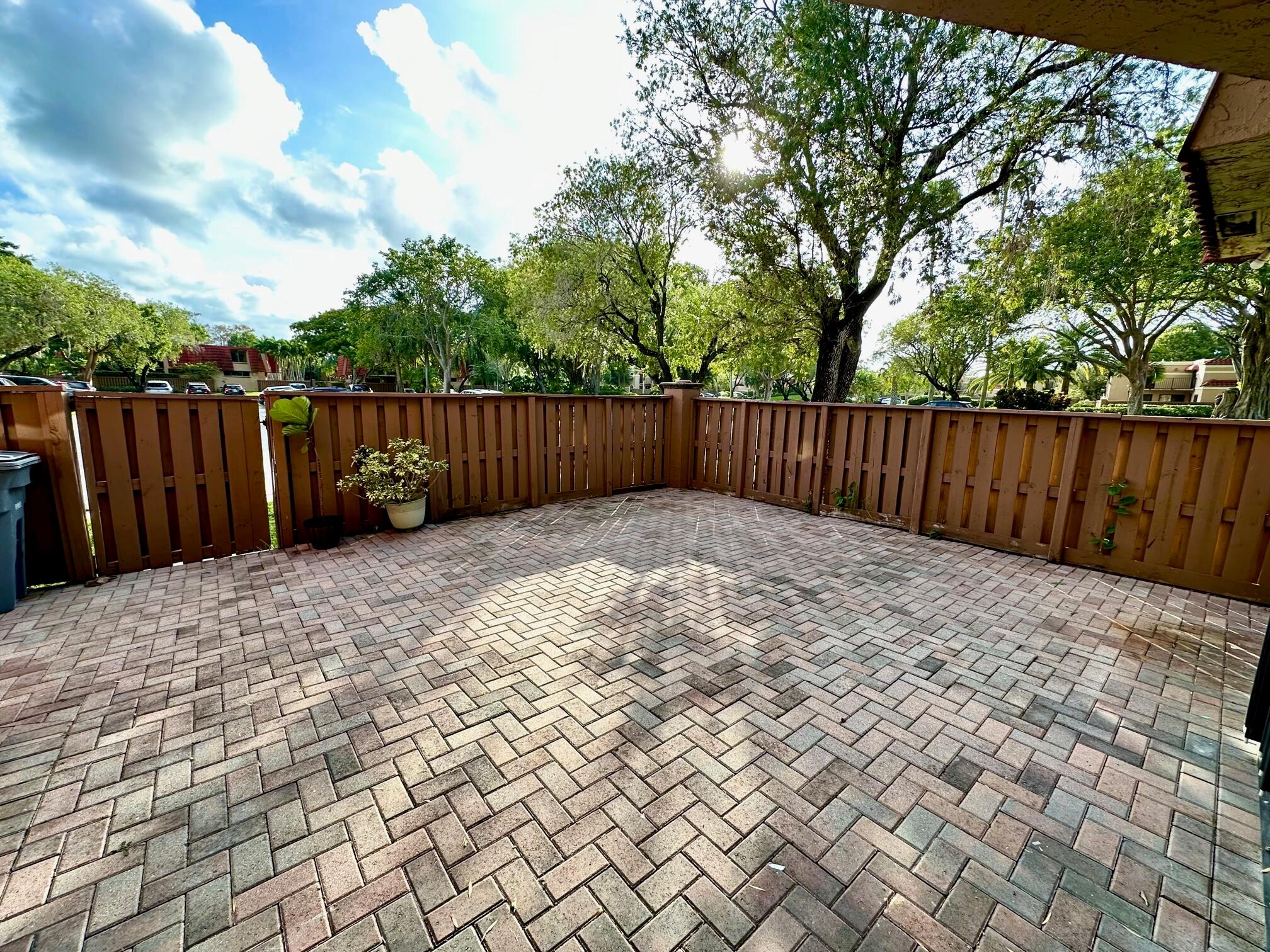 Really nice townhome with large fenced courtyard. Light & bright. Half bathroom downstairs, two full bathrooms upstairs. Ceramic tile floor downstairs, wood upstairs. Each bedroom has it's own full bathroom. Storm shutters for all windows. Beautiful community has pool, tennis, and playground. Assigned parking space in front. Ceiling fans in bedrooms and living room. 1 dog allowed to 20lbs, no cats per landlord. Non-smokers only. Located on quiet street with little traffic.