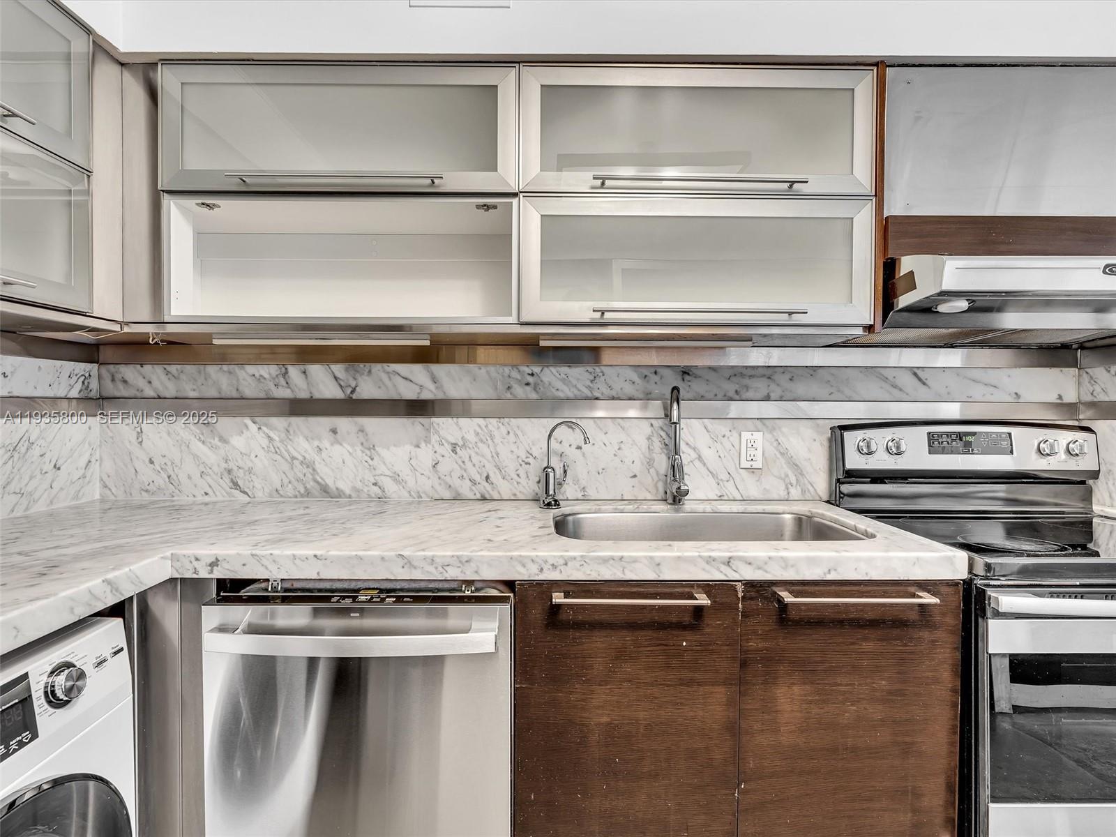 Rare 3-bedroom ocean facing residence with a meticulous designer renovation now available. This unique & elegant home showcases architectural glass details throughout — including custom doors, partitions, and closets — creating an open, contemporary flow enhanced by exceptional natural light. The spacious floor plan offers a seamless living and dining experience ideal for entertaining, complemented by recessed lighting, hurricane impact/soundproof windows and sliding doors, ceramic and wood flooring, kitchen with new appliances and veined marble countertops, and in-unit washer/dryer. Two spa-style bathrooms are finished with natural stone, vessel sinks, and modern fixtures — one featuring a frameless glass walk-in shower and the other a stone-clad soaking tub. Additional highlights include abundant custom built closets and a private balcony facing the ocean. Cable, internet, and parking are included; unit is delivered unfurnished. Ideally located in North Beach, just blocks from the beach, boardwalk, Publix, restaurants, and entertainment. Aquasol on the Bay offers 24-hour security and concierge, a fitness center overlooking the Intracoastal, sauna, and valet parking. Video available upon request — schedule your showing today.