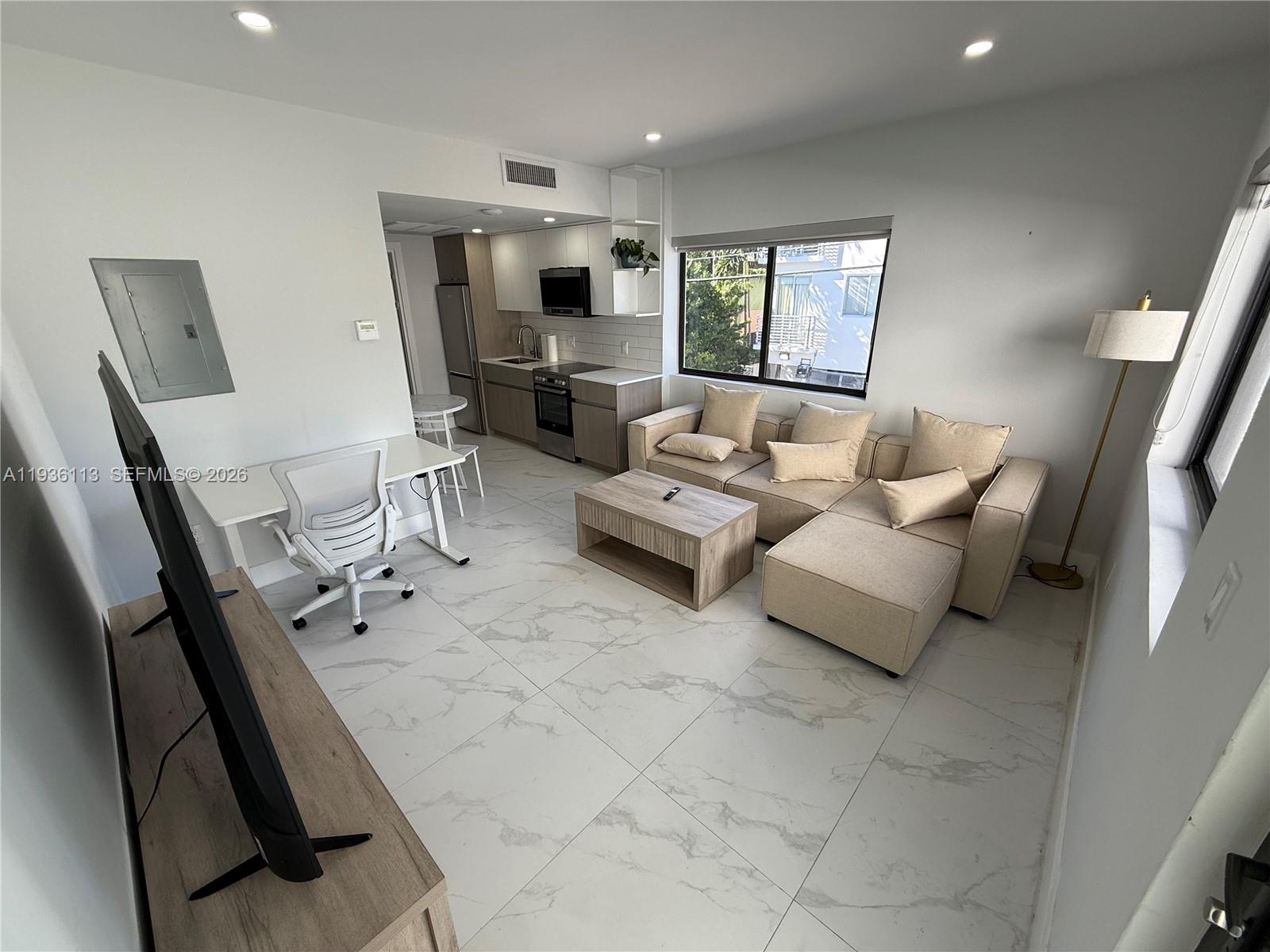 AVAILABLE ON JANUARY 1ST! Full-size washer/dryer and centralized air conditioning in the unit. Wifi included in the rental! Complete renovation of the building and the unit that offers new: roof, windows and impact doors, central air conditioning, plumbing, electricity, external stucco, painting, gutters, railings, fences and landscaping. Each unit has elegant white porcelain tile floors, custom modern kitchens with stainless steel appliances, floor-level shower, recessed lighting, and in-unit washer/dryer. The units are fully furnished and are perfect for luxury living near the beach in the heart of Miami Beach. Walk up to Whole Foods, Publix and Flamingo Park with their tennis courts, swimming pool and sports facilities and, of course, the beach!