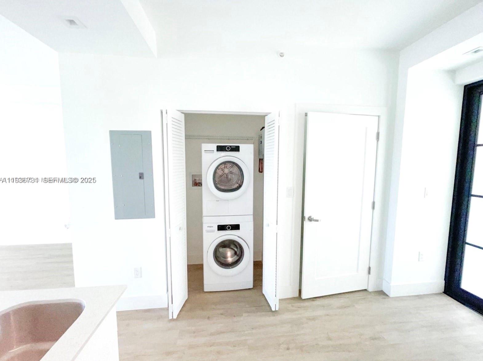 Modern condo in a prime location near BCC, FAU, and NFU, perfect for student and urban living. This stylish studio with one bathroom offers contemporary design and everyday comfort, featuring stainless steel appliances, durable vinyl flooring, impact windows, and an in-unit washer and dryer. Located in an exclusive boutique building with only 45 residences, amenities include a fully equipped fitness center, media and game lounge with free WiFi, and assigned parking. Enjoy unbeatable convenience just steps from top universities, shopping, dining, public transportation, and major highways. This move-in-ready condo is available immediately upon association approval. Schedule your private showing today and experience modern living at its best.