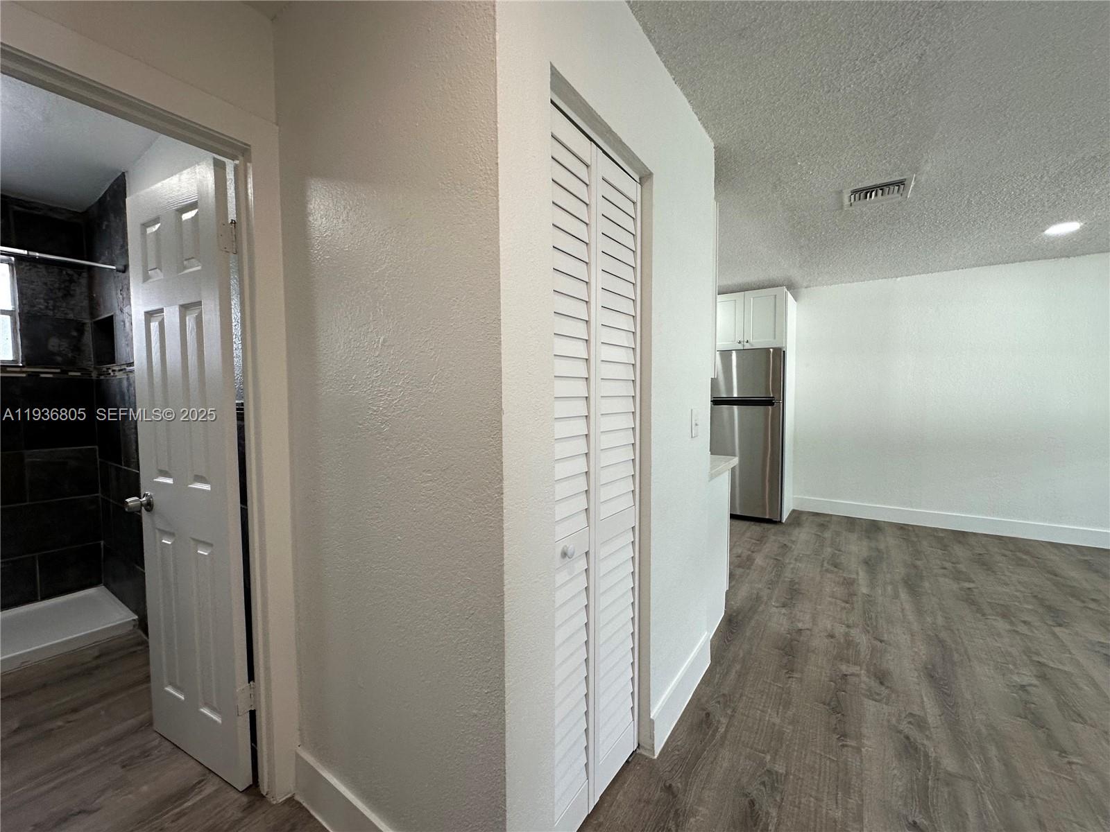 Brand-new, charming 2BR/2BA apartment in Hallandale Beach, meticulously remodeled to embody comfort and style. Every detail feels like home, with new elegant finishes throughout—sparkling granite countertops, brand new, high-end appliances, with beautiful lighting and flooring. The spacious, first-floor corner unit boasts an open, welcoming layout perfect for gatherings and entertaining, complemented by big rooms and walk-in closets for ample storage. Has a private laundry/utility room with washer & dryer hookup. Unit includes 1 assigned parking space, water, trash and sewer. Situated in a perfect location in a quiet community with easy access to parks, beaches, shopping & dining. This is a true Hallandale gem—a haven of newness, spaciousness & convenience, where every detail makes you feel right at home.