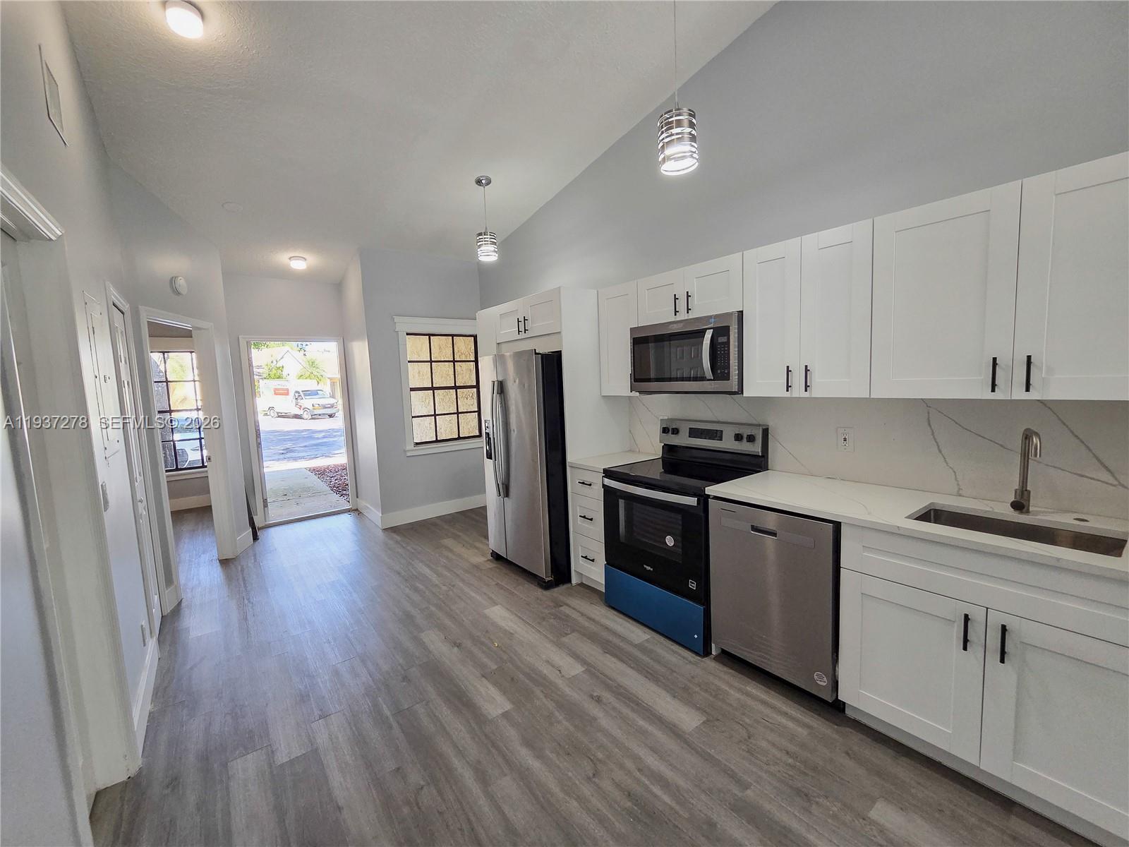 Fully remodeled in 2025 with sleek, contemporary finishes! This move-in-ready 2BR/2BA villa features a NEW ROOF (2022), brand-new appliances, in-unit washer/dryer, and tons of natural light with an open kitchen layout. Enjoy a private patio, sparkling community pool, and 2 assigned parking spots + guest parking. *A+ Location – Top-rated schools, just 10 mins to Sawgrass Mills & Amerant Bank Arena. Fast association approval. wonderful neighbors, and a pet-friendly environment where your furry friends are always welcome. A great place to call home simple, clean, and ready for you.