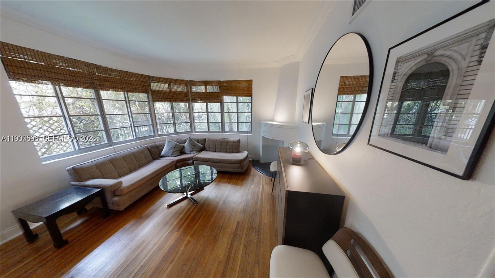 Spacious Furnished 1 bedroom with 2023 renovated kitchen. Meridian Ave tree lined street directly across from Flamingo tennis courts, park & pool. Florida Pine Wood floors. Large 704+ sq feet with plenty of natural sunlight from the buildings sleek curved wraparound living room windows. Ample closest space, custom zebra cabinetry. Central A/C. Well kept building Art Deco building designed by Frank Wyatt Woods, architect of many Coral Gables Merrick village homes. Manicured gardens and picnic area, bike storage and secure laundry room. Street Parking decal yearly charge under $90 from City of Miami Beach