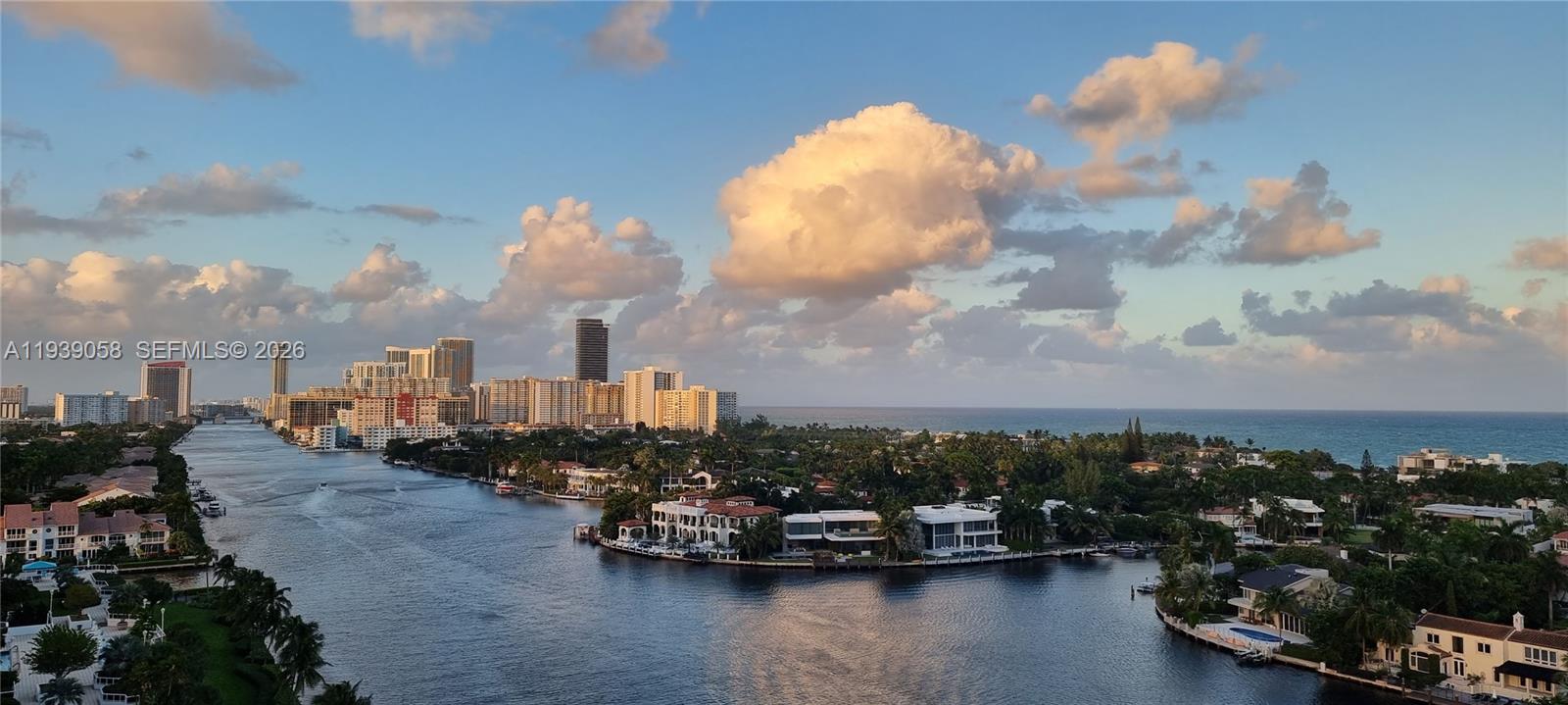 Absolutely breathtaking waterfront residence! This modern, contemporary 2-bedroom, 2-bath condo offers spectacular panoramic views of the Intracoastal, the ocean, and prestigious Golden Beach. Thoughtfully remodeled and tastefully furnished, the unit features elegant wood-look tile flooring and a spacious, light-filled layout with the convenience of an in-unit washer and dryer. The stunning open-concept kitchen is a chef’s delight, showcasing sleek marble countertops and a seamless flow perfect for entertaining. High-speed internet and basic cable are included for added comfort and value. Ideally located just minutes from Aventura Mall, Gulfstream Casino & Racetrack, dining, and shopping, with easy access to golf courses, tennis courts, and Whole Foods Market. This exceptional residence combines luxury, lifestyle, and location—offering an unmatched living experience with unforgettable views. A rare opportunity you won’t want to miss.