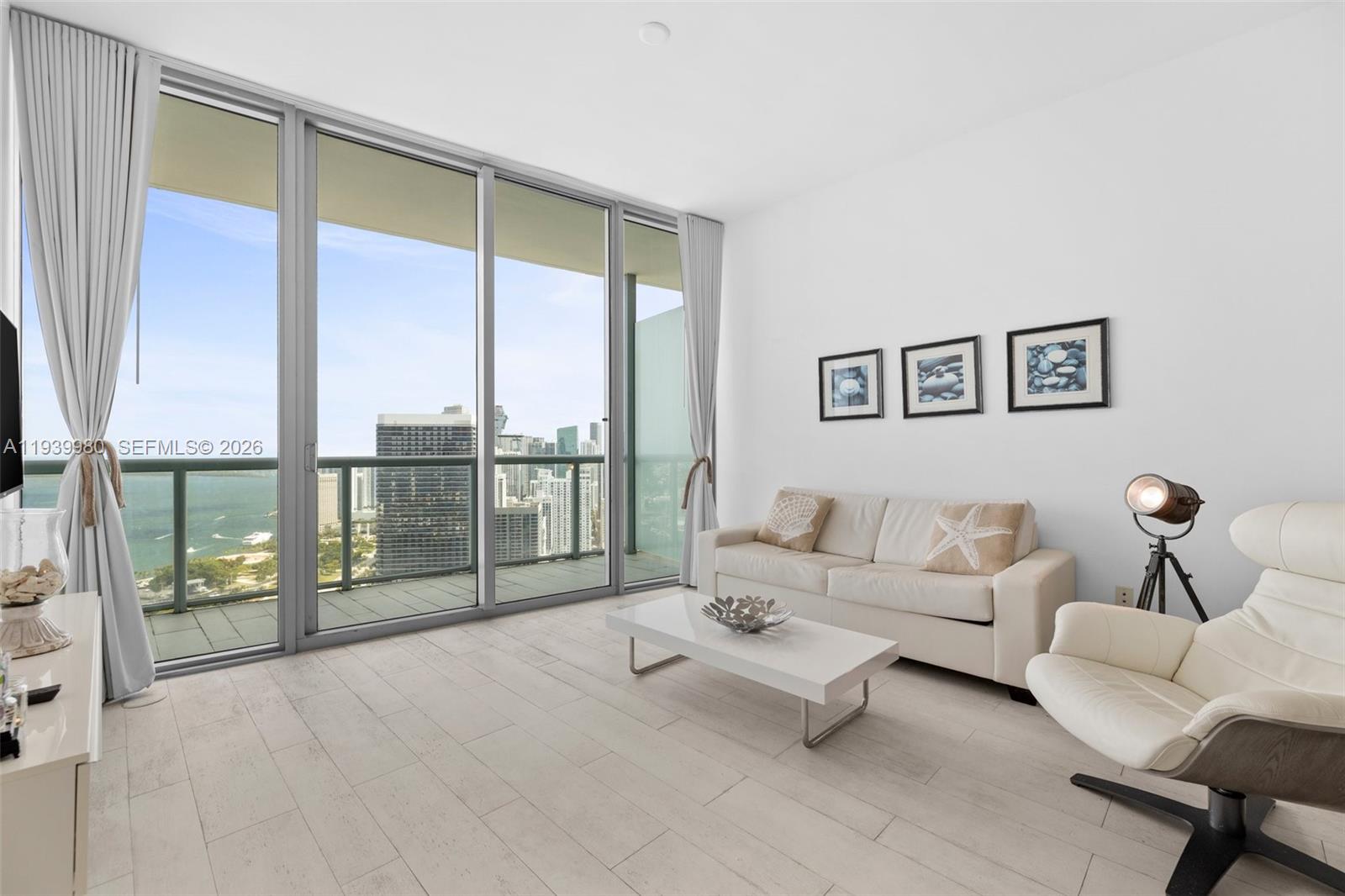 AVAILABLE FROM February 15. 12 MONTHS ONLY - NO SHORT TERM ALLOWED IN BUILDING. Spectacular 1 Bed/1.5 Bath w/stunning unobstructed view of Ocean, Biscayne Bay, AA Arena & port of Miami. This designed furnished unit has white wash finish laminate flooring throughout, window treatments, custom built walking closets & stainless steel appliances + granite countertops. The building has excellent amenities: 2 pools, spa, party room, fitness center, volleyball court, 24 hrs concierge, valet... NO PETS NO SHARING NO SUBLET, NO AIRBNB