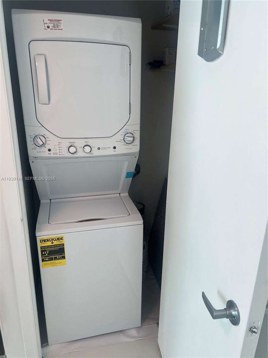 What a view! Enjoy living in this newly renovated, spacious and bright Studio. The apartment features brand new, modern porcelain floors, all new stainless steel appliances, washer/dryer in the unit, a spacious walk-in closet and a private balcony. Wifi and one covered parking spot is included in the rent. The building is conveniently located just across the street from Margaret Pace Park and offers great amenities as 24-hour security and concierge, 24-hour valet parking, a Bi-level fitness center, two outdoor pools, a theater room, a club room and a convenience store in the lobby.