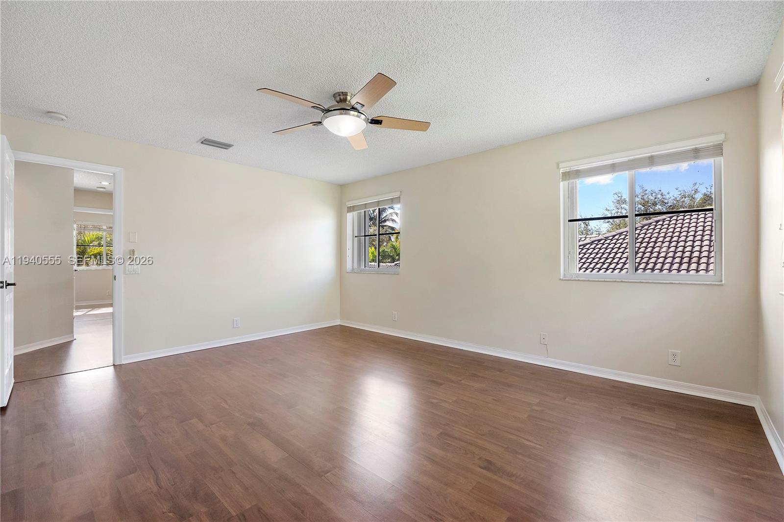 NO BETTER RENT! VACANT IMPECCABLE HOME -READY TO MOVE INTO NOW Open and bright floor plan, 5 beds, 3.5 baths home in The Meadows. Over-sized patio covered area & remote-controlled awning. Beautiful kitchen, breakfast area, modern granite counter tops & back splash, SS appliances. Master bedroom/bathroom. Custom-made built-in closets. Indoor laundry room with cabinet storage. Accordion Shutters. Smart phone-controlled AC Thermostat Gated community with Swimming Pool, Basketball Court and Playground. Walking distance to A+ graded schools. Great Location. Enjoy beautiful landscape & walking path around amazing lake. Excellent condition.
