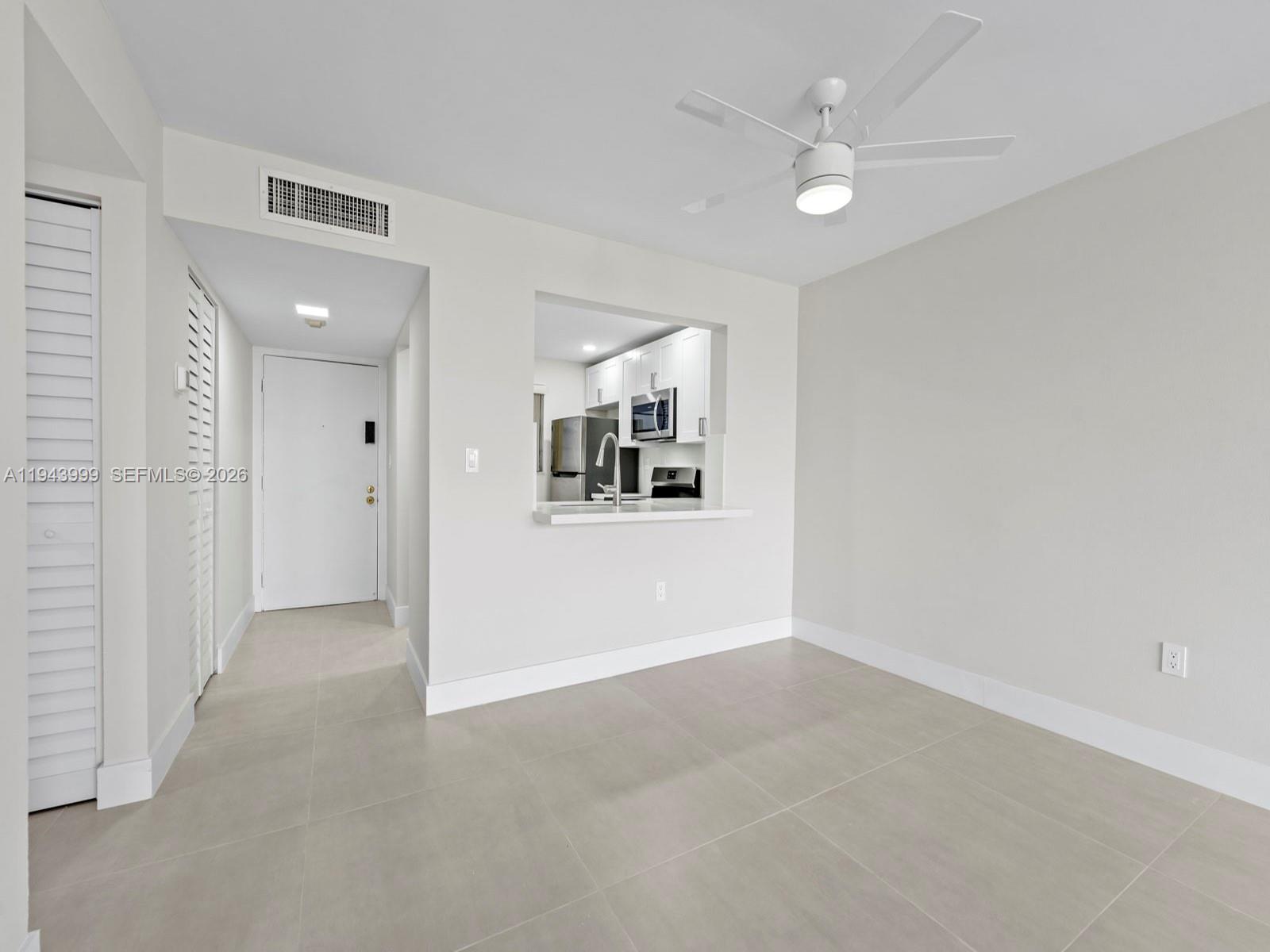Be the first to live in this freshly renovated 2-bedroom, 2-bath corner-unit condo in Gardens of Kendall South. Features fresh paint, new tile flooring, and a brand-new kitchen with white shaker cabinets, quartz countertops, and stainless steel appliances. Spacious living/dining area opens to an oversized balcony overlooking the canal with a storage closet. Updated hallway bath with dual access serves guests and the second bedroom. Primary suite offers a walk-in closet, bright vanity area, and updated en-suite bath with shower. Community includes pool, tennis courts, clubhouse, BBQ area, 24/7 security, washer/dryer on every floor, and guest parking. Association approval required. No pets. Prime Kendall location near MDC, highways, shopping, and hospitals.