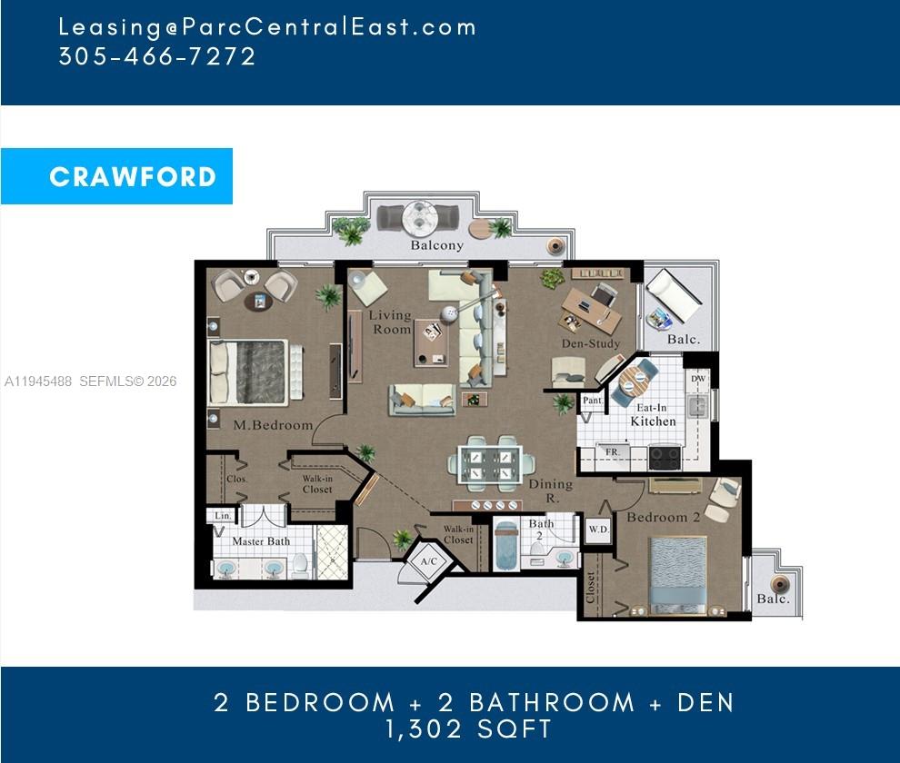 Parc Central Aventura Eas 2 bedroom Condo For Rent